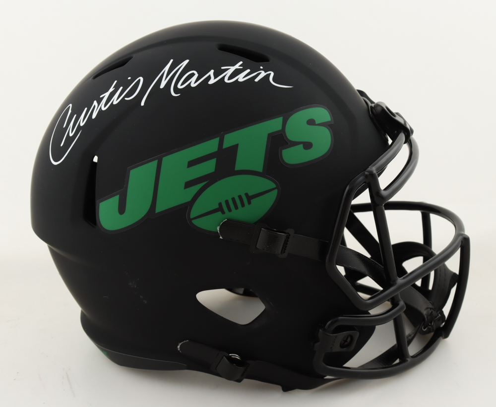 Riddell New York Jets full-size replica eclipse alternate speed helmet. Hand-signed by Curtis Martin (HOF).