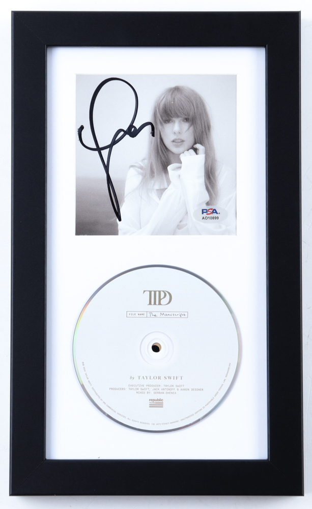 Custom frame measures approximately 8" x 13.5" in size. Features a "The Torture Poets Department" CD insert that has been hand-signed by Taylor Swift and includes the disc as shown.