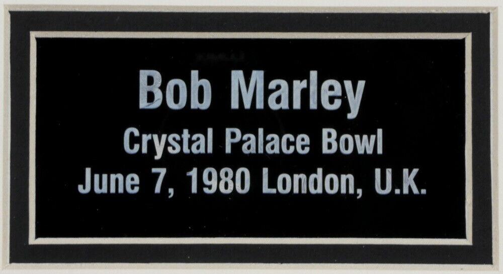 Frame measures approximately 18" x 22" and features an unsigned photo of Bob Marley (D. 1981). Display also features a custom Bob Marley nameplate. Please note that the item is unsigned.