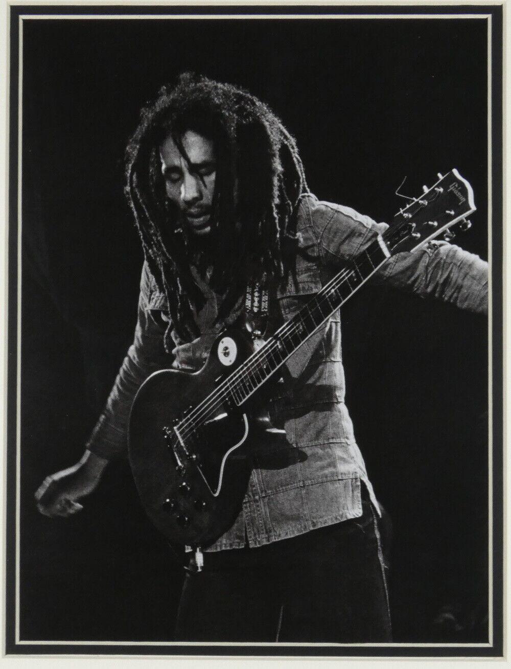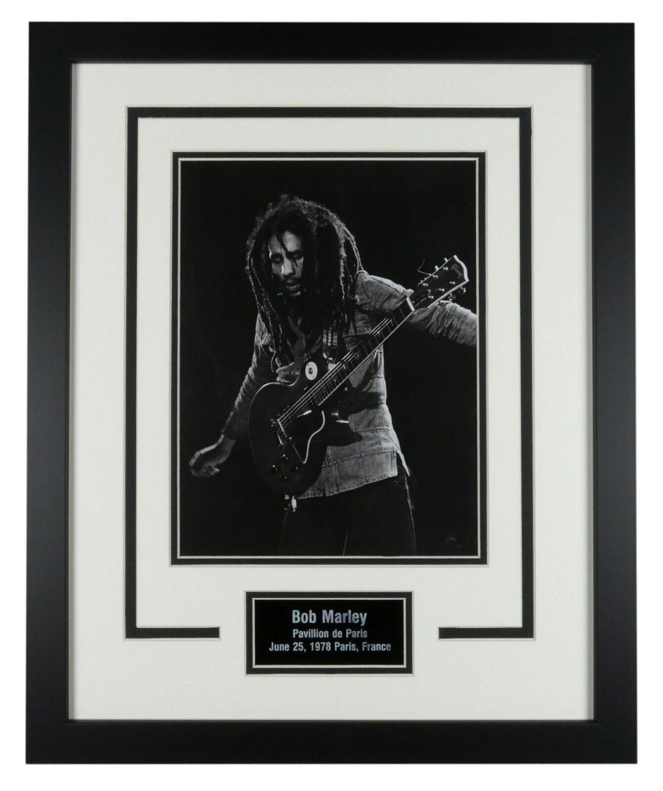 Frame measures approximately 18" x 22" in size and features an unsigned photo of Bob Marley (D. 1981). Display also features a custom Bob Marley nameplate. Please note that the item is unsigned.