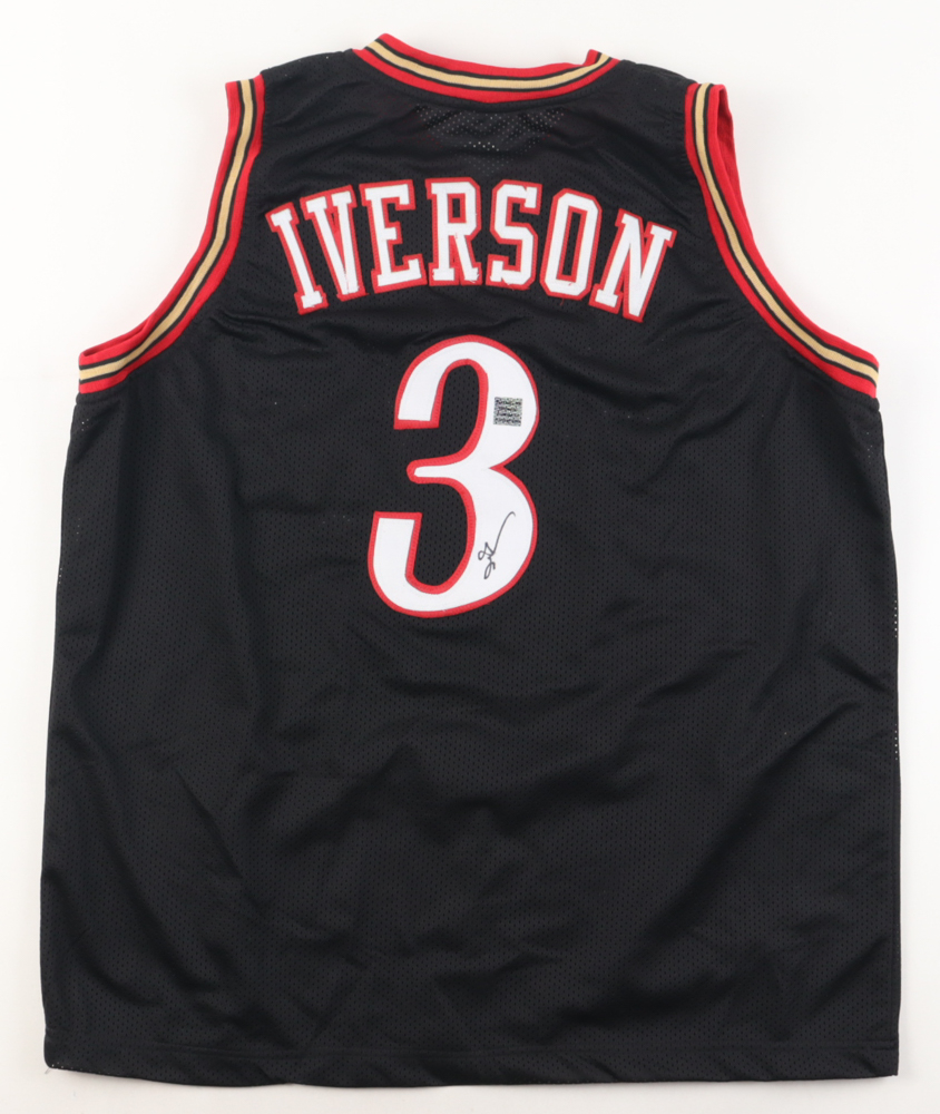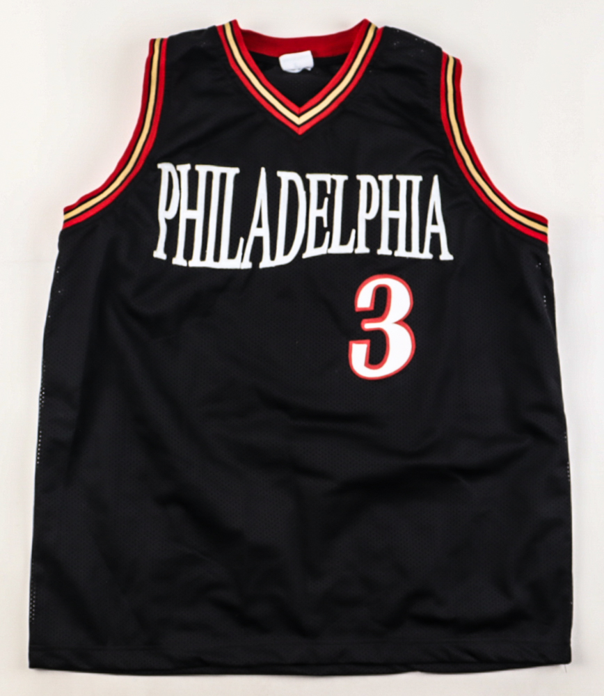 Custom jersey with everything sewn on, size XL. Hand-signed by Allen Iverson (HOF).