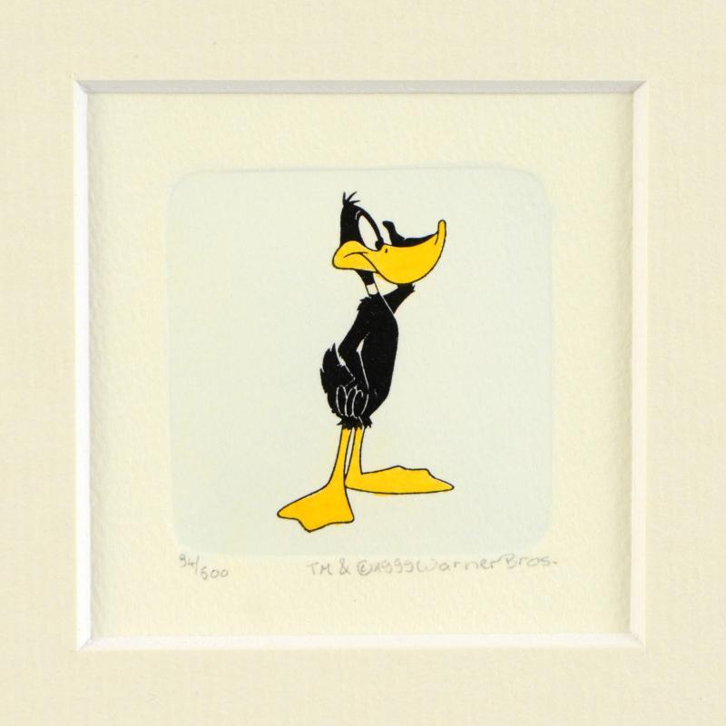 "Daffy Duck (Looking to the Side)" is a limited edition etching on paper with hand-tinted coloring from Warner Bros. (dated 1999) and numbered! This piece comes framed. Measures approx. 9" x 9" (with frame), 1" x 2" (image).