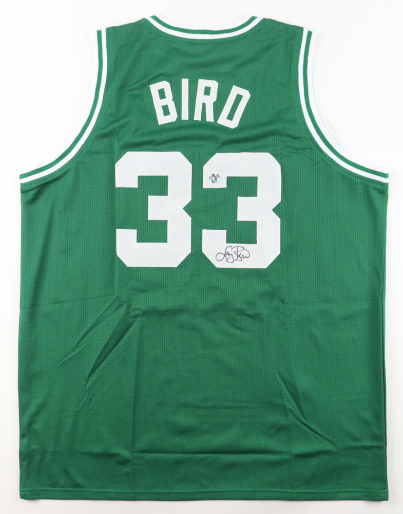 Custom jersey. Everything sewn on, size XL. Hand-signed by Larry Bird (HOF).