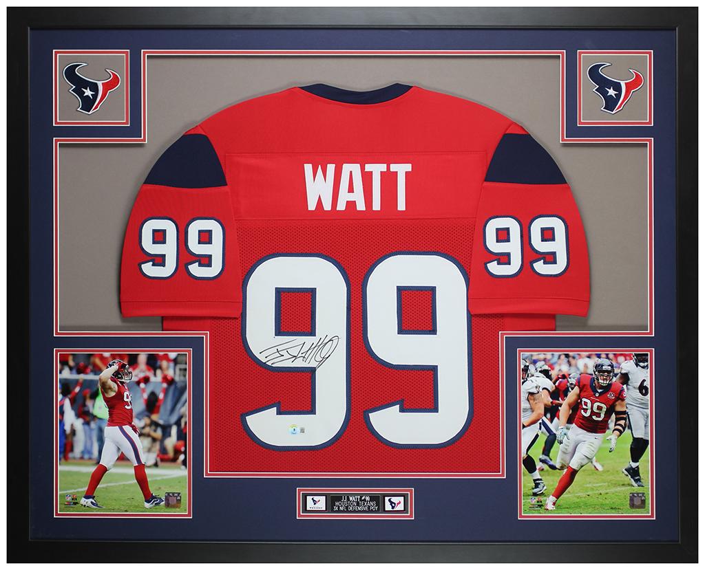 Custom frame measures 35” x 43” in size and features a jersey that has been hand-signed by JJ Watt.