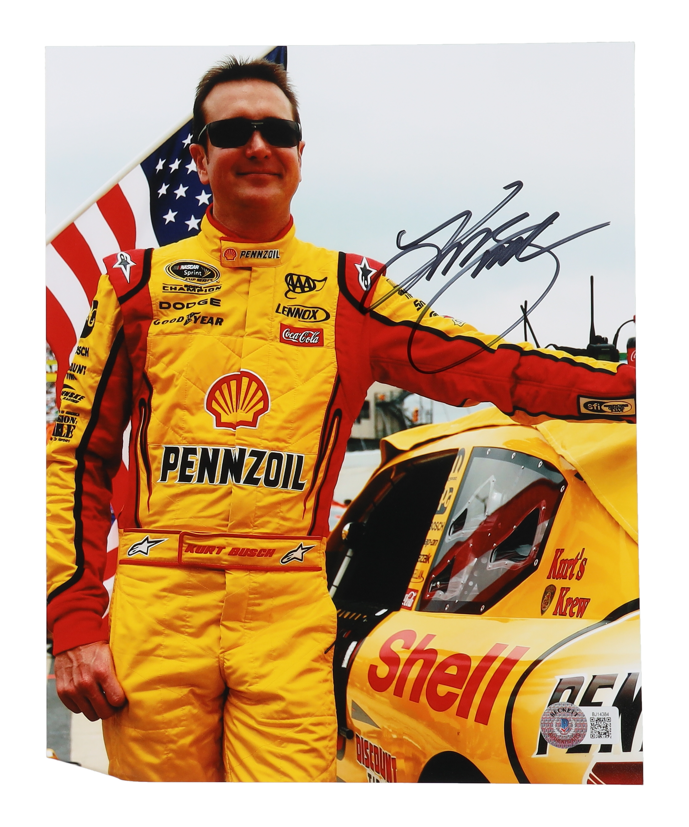 Photo measures 8" x 10" in size and has been hand-signed by Kurt Busch.