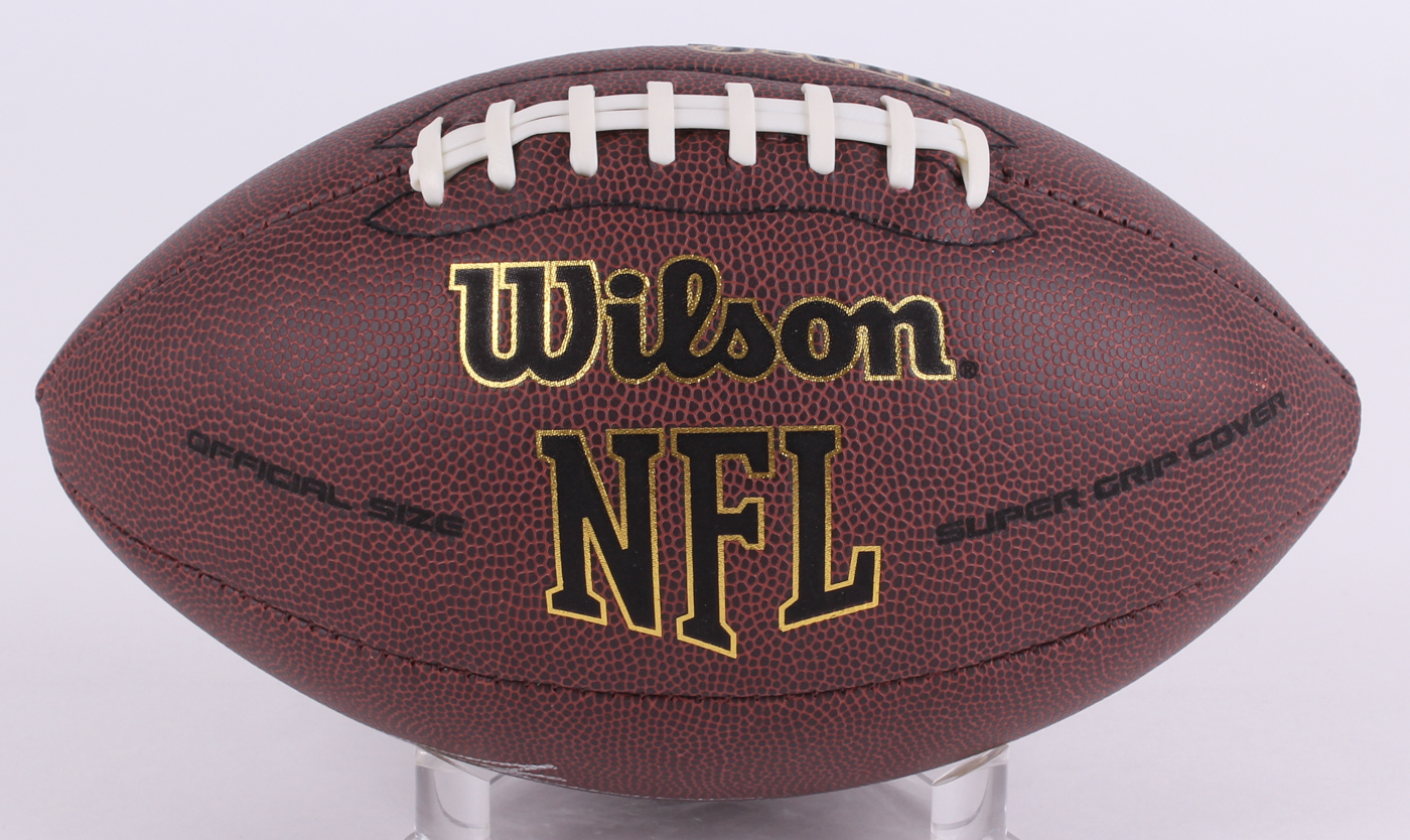 Wilson full-size NFL football has been hand-signed in silver paint pen by Jake Plummer (Cardinals).