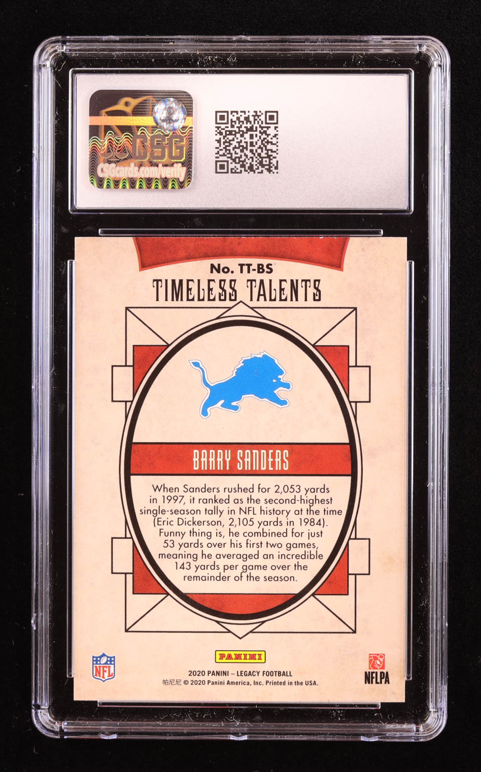 Barry Sanders 2020 Panini Legacy Timeless Talents #6 (CGC 9.5)