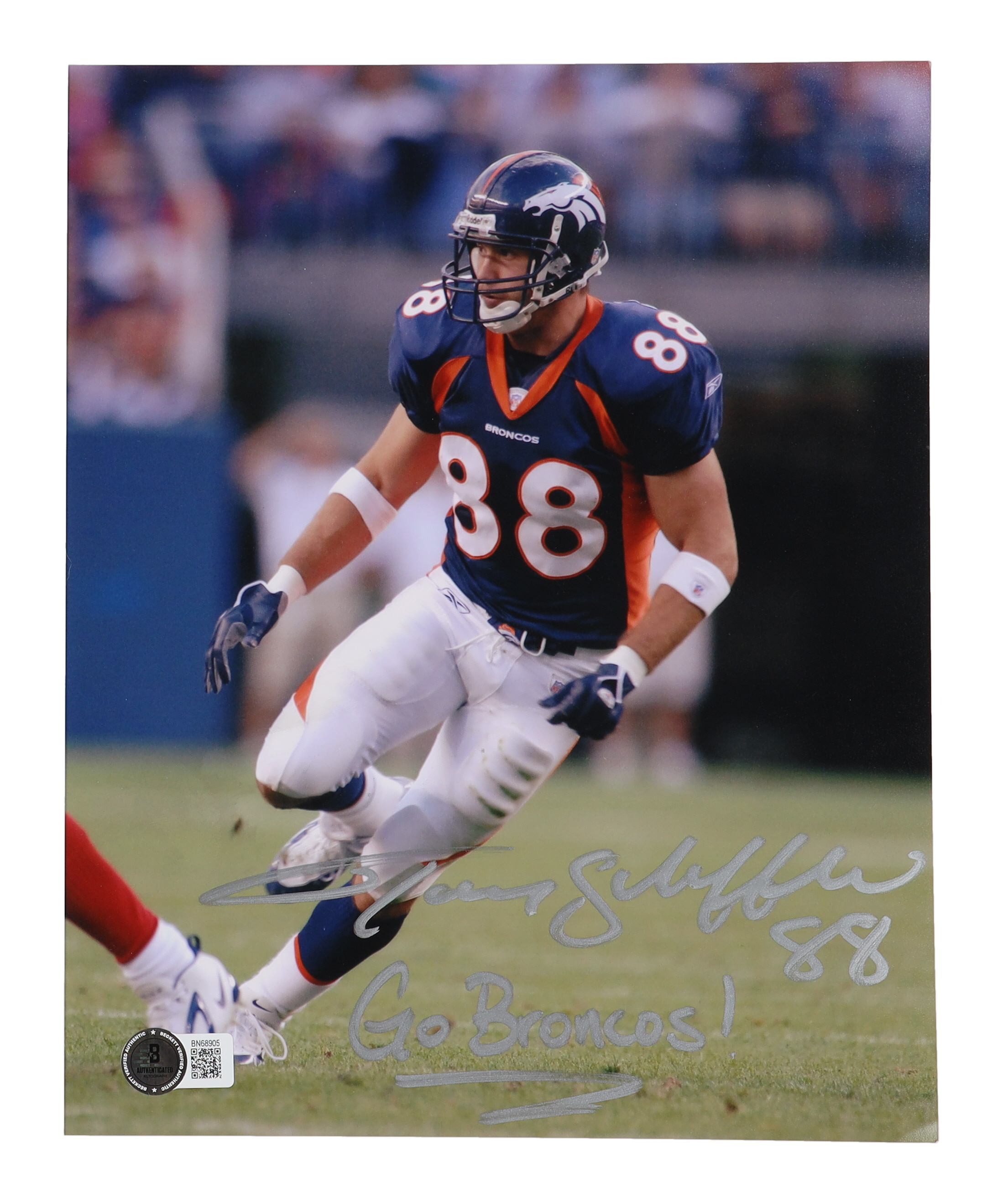 Tony Scheffler Signed Broncos 8x10 Photo Inscribed "Go Broncos!" (Beckett)