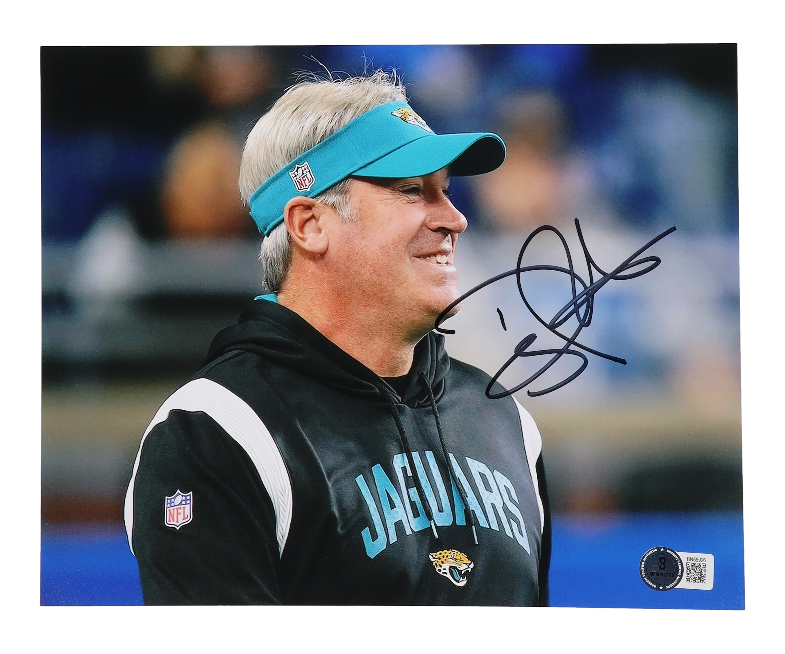 Photo measures 8" x 10" in size and has been hand-signed by Doug Pederson (Jacksonville Jaguars).