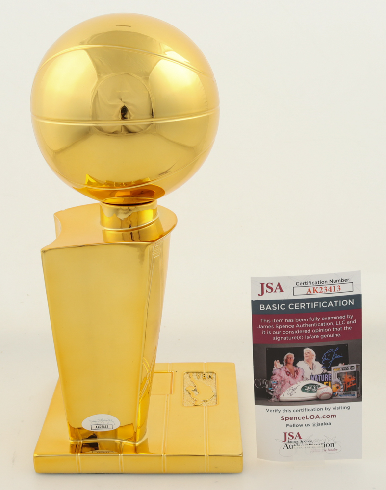 Replica championship trophy. Hand-signed by Giannis Antetokounmpo (Milwaukee Bucks). Please note there is scuffing on the base of the trophy.