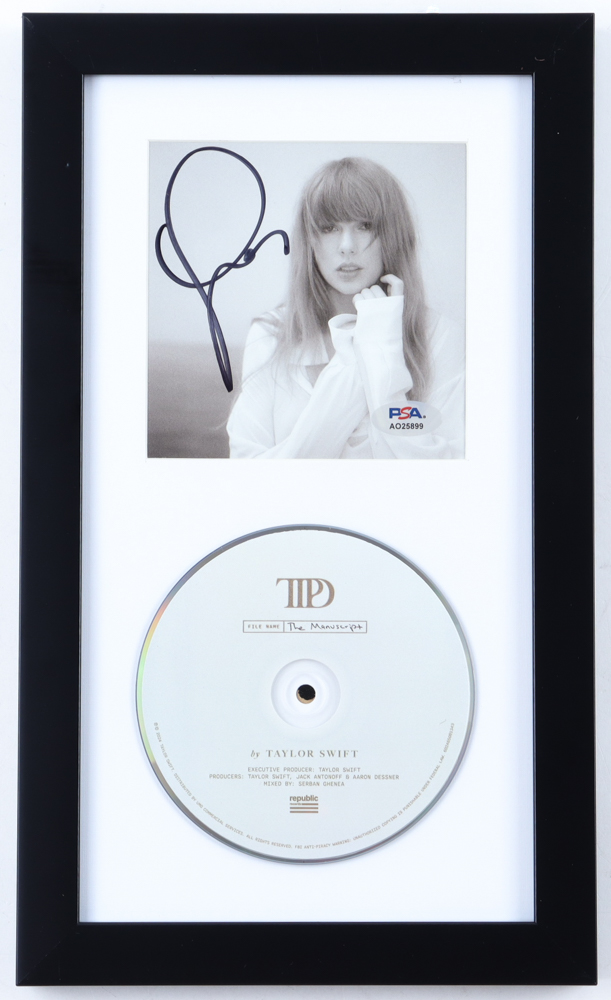 Custom frame measures approximately 7.5" x 13.5" in size. Features a "The Torture Poets Department" CD insert that has been hand-signed by Taylor Swift. The display also includes the CD as shown.