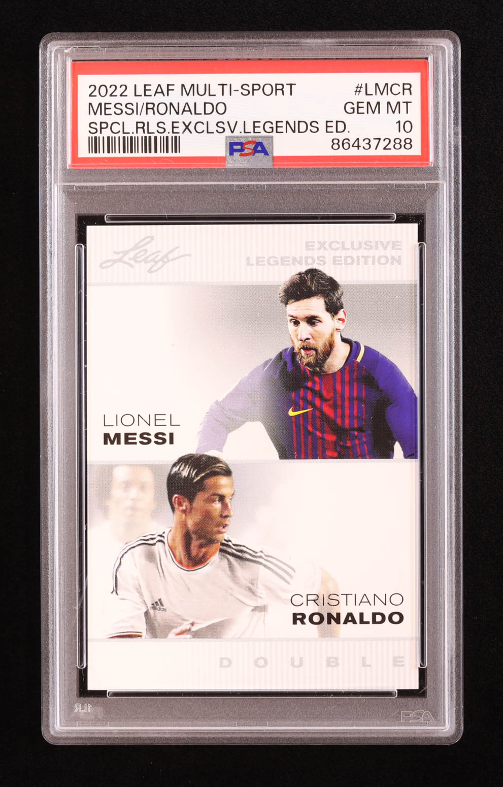 Lionel Messi / Cristiano Ronaldo 2022 Leaf Special Release Exclusive Legends Edition Double #LMCR (PSA 10)