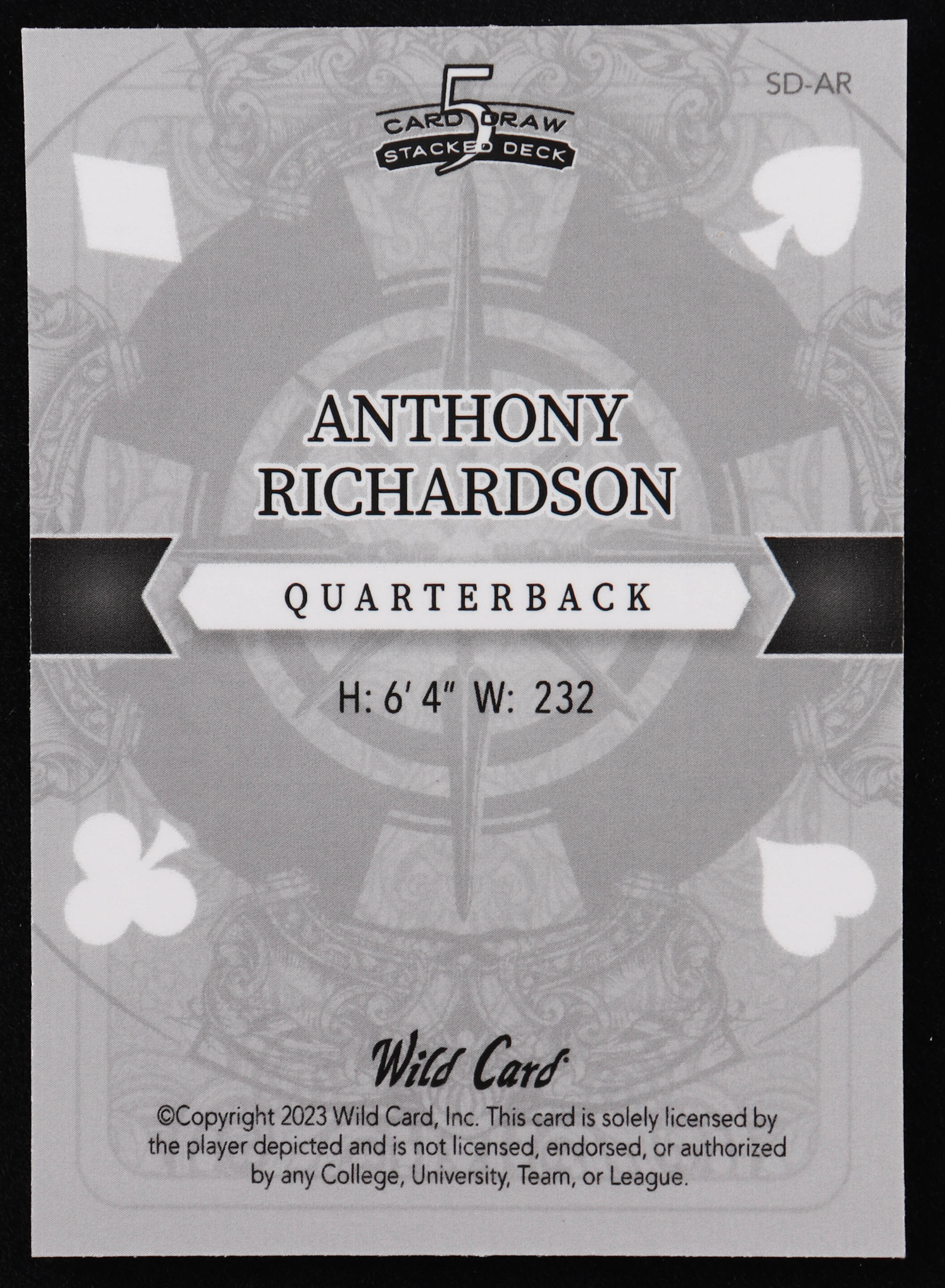 Anthony Richardson 2023 Wild Card 5 Card Draw Stacked Deck Purple Laser #SDAR RC #3/4