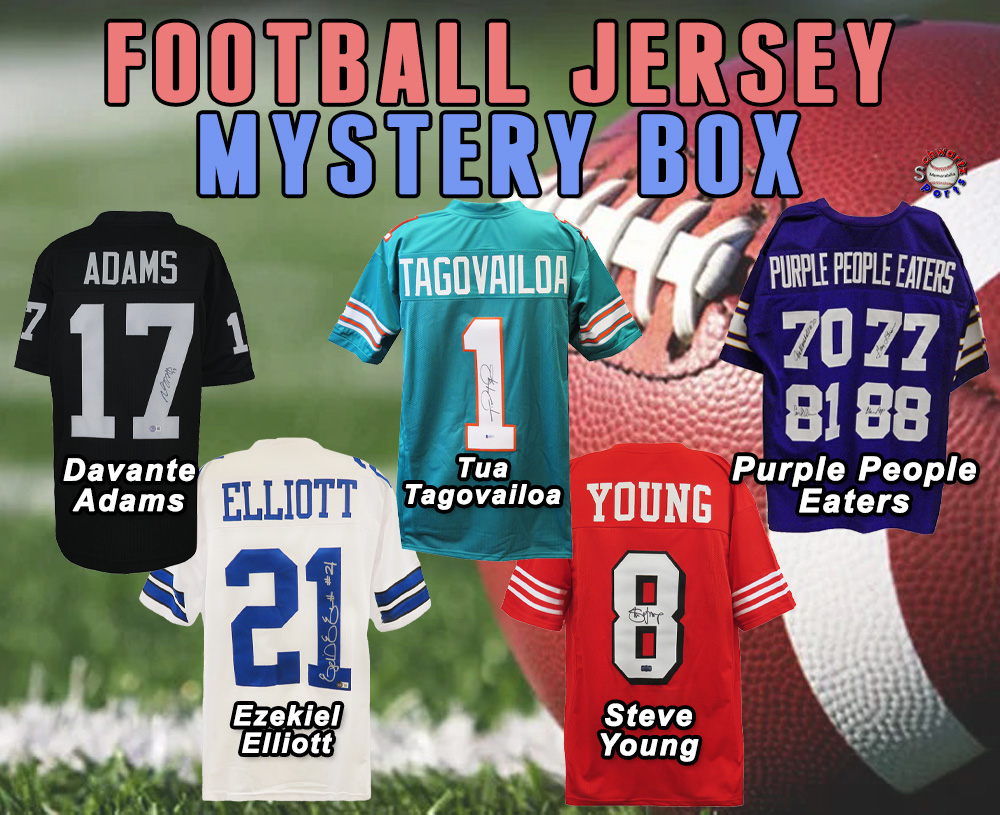 1 SIGNED FOOTBALL JERSEY PER BOX!! - (Steve Young, Tua Tagovailoa, Davante Adams & More)