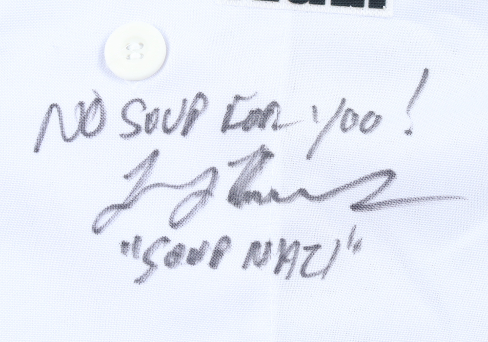 Larry Thomas Signed "Seinfeld" Chef Coat Uniform Inscribed "No Soup For You!" & "Soup Nazi" (PSA)