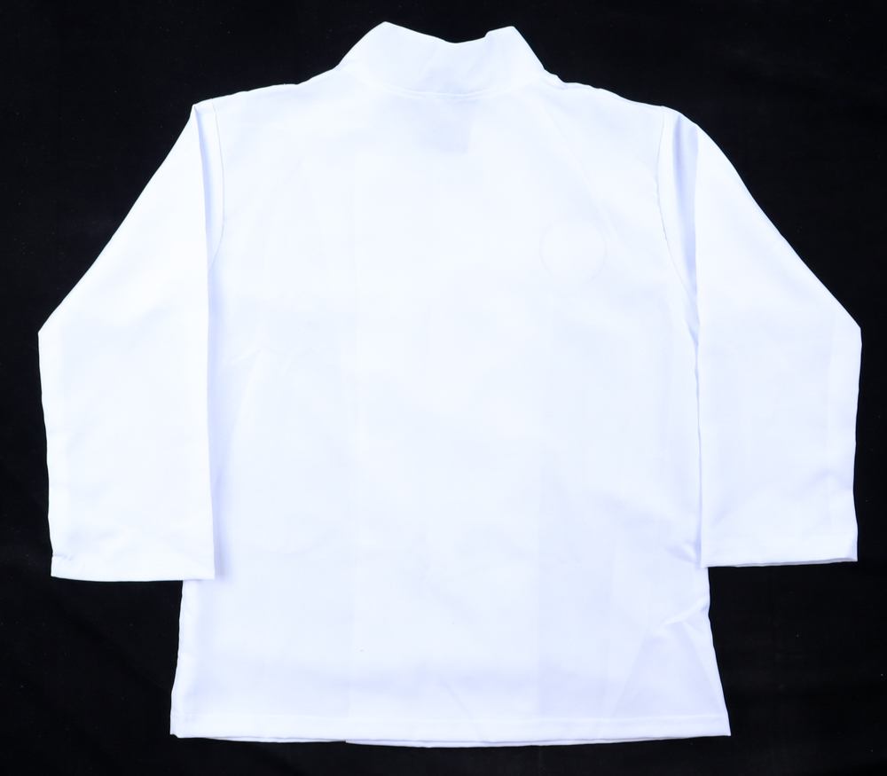 Custom replica chef coat, size XL. Hand-signed and inscribed by Larry Thomas.