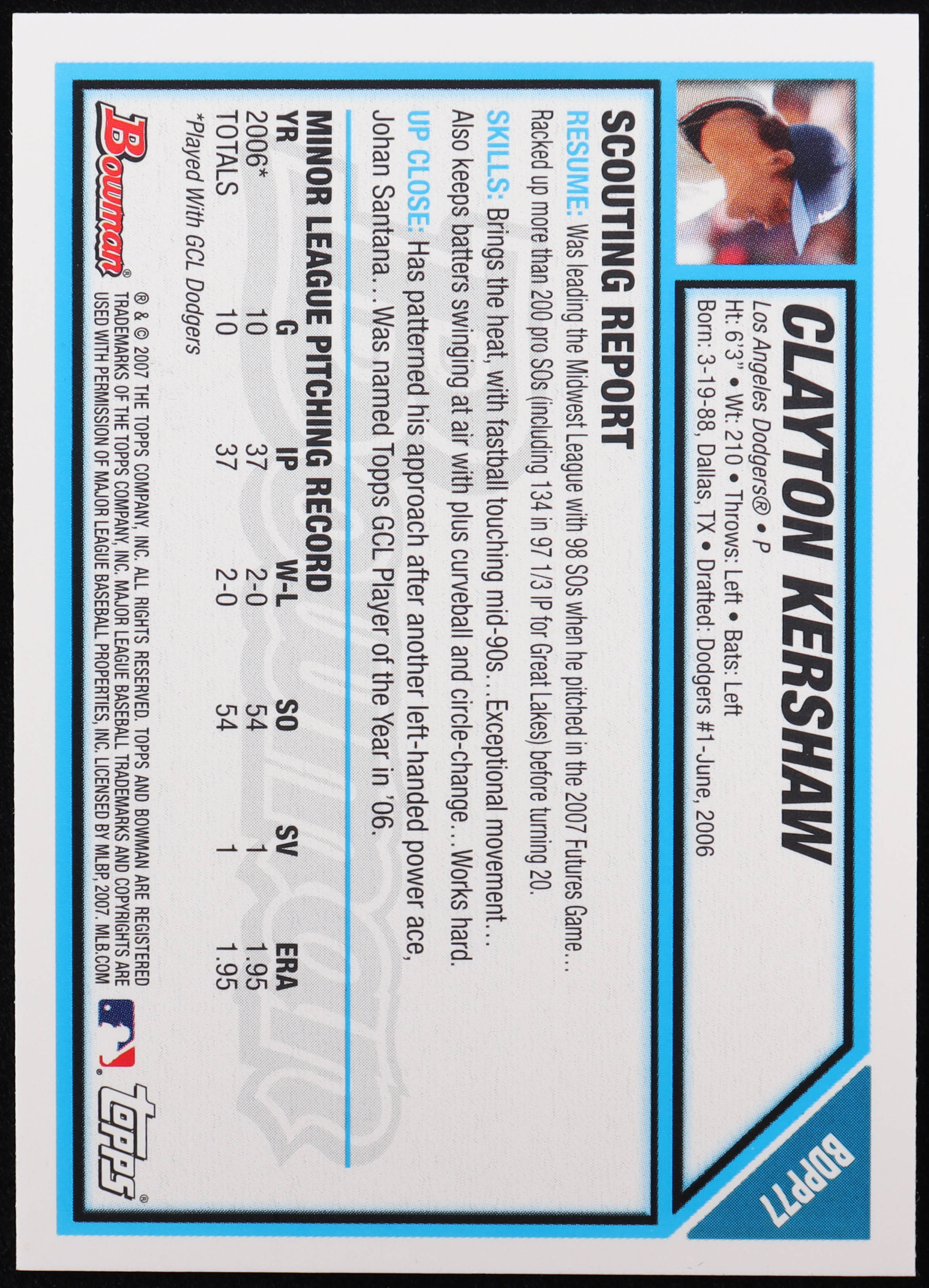 Clayton Kershaw 2007 Bowman Draft Future's Game Prospects #BDPP77 RC