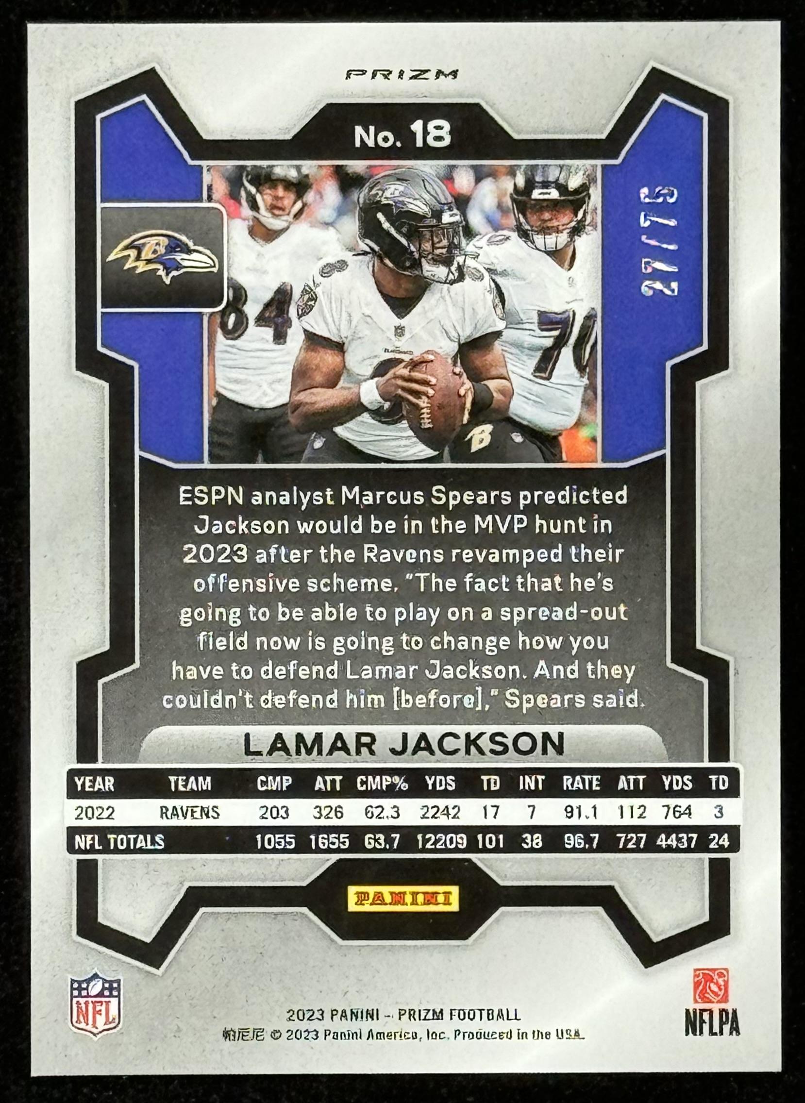 Lamar Jackson 2023 Panini Prizm Prizms Green Scope #18 #27/75