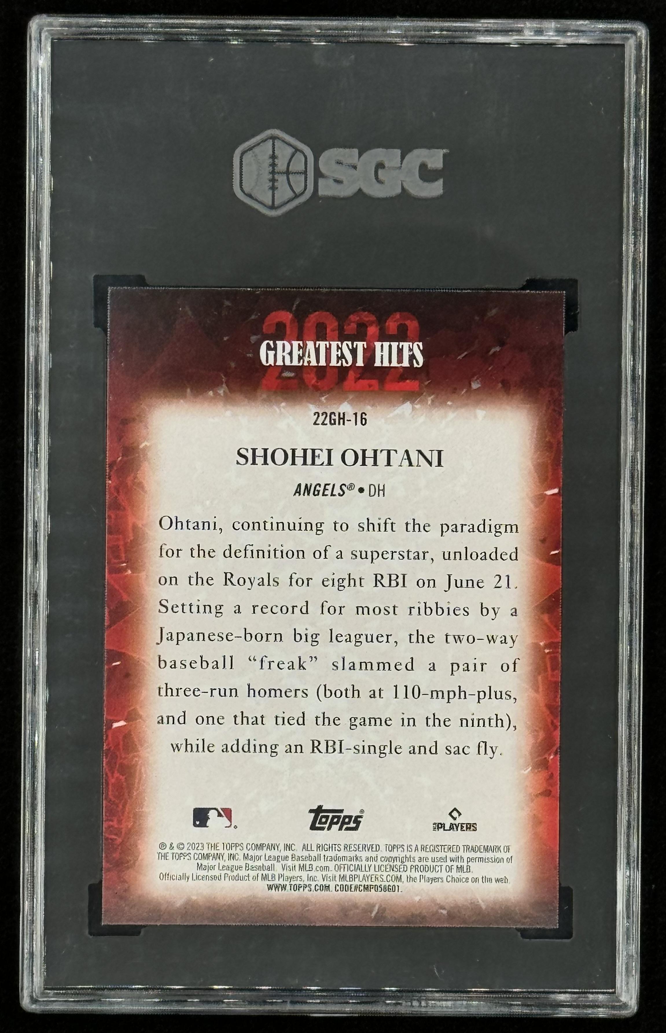 Shohei Ohtani 2023 Topps '22 Greatest Hits #22GH16 (SGC 10)