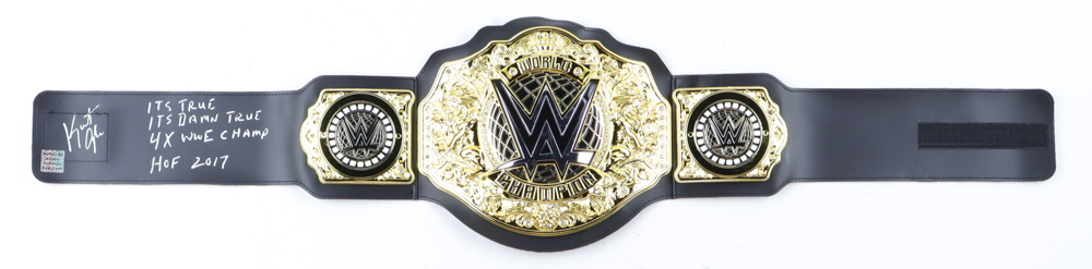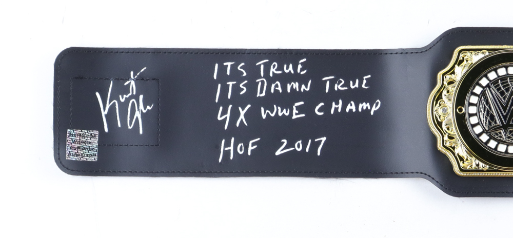 Kurt Angle Signed WWE Championship Belt Inscribed "Its True Its Damn True", "4x WWE Champ" & "HOF 2017" (Playball Ink)