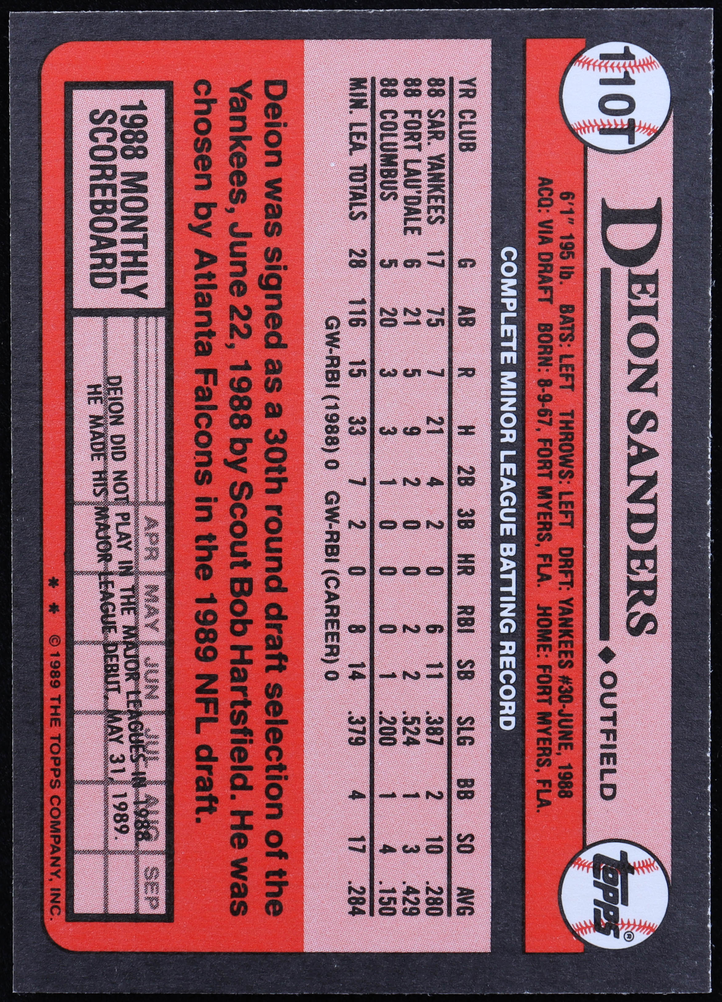 Deion Sanders 1989 Topps Traded #110T RC