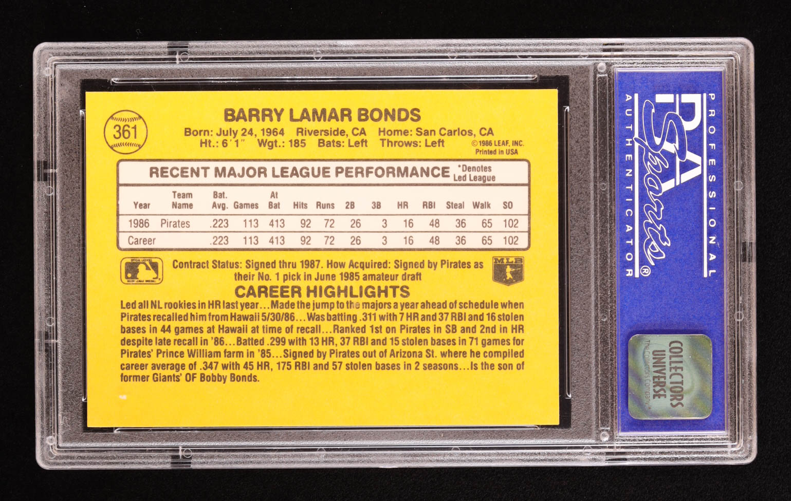 Barry Bonds 1987 Donruss #361 RC (PSA 9)