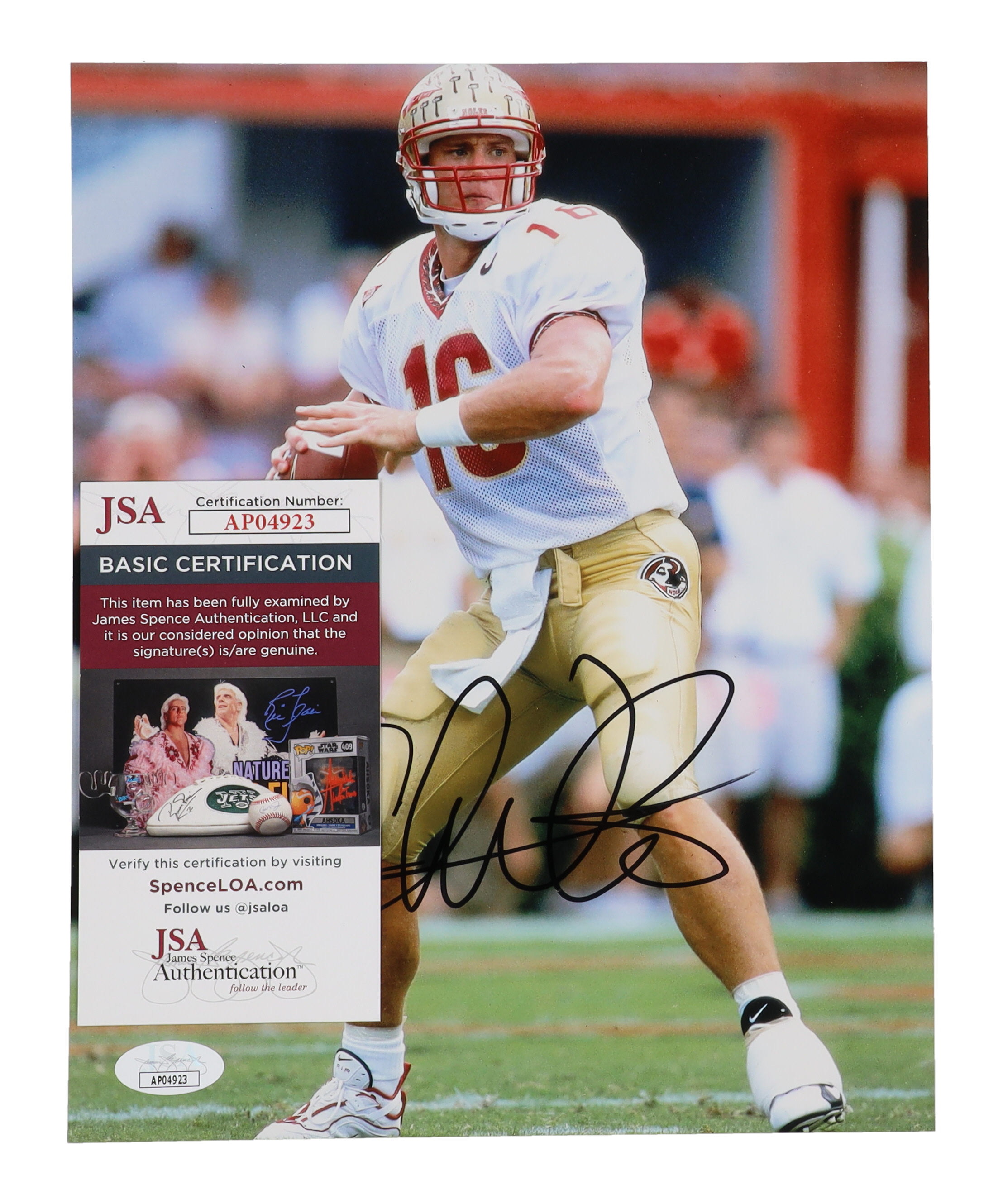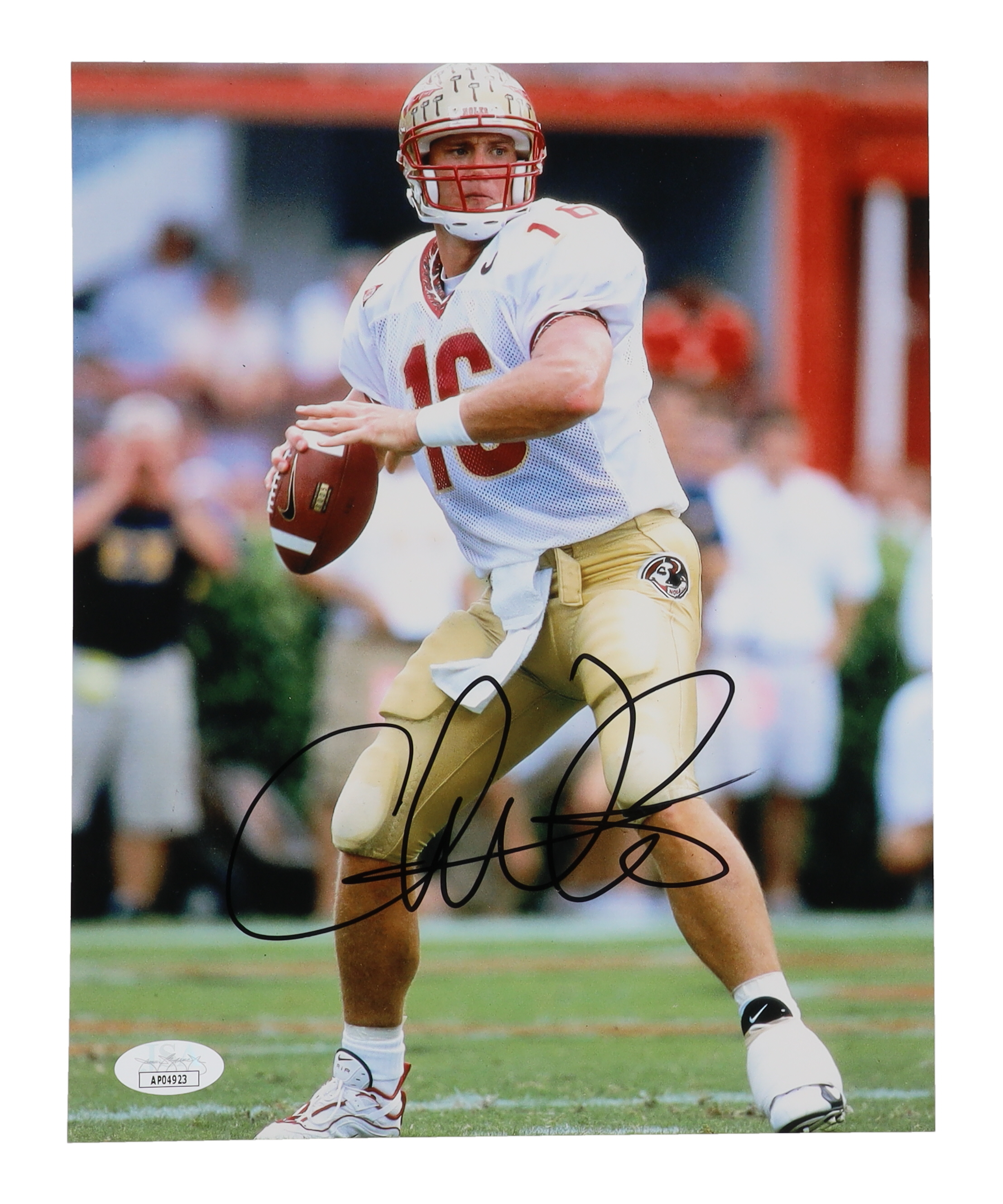 Photo measures 8" x 10" in size and has been hand-signed by Chris Weinke (Florida State Seminoles).