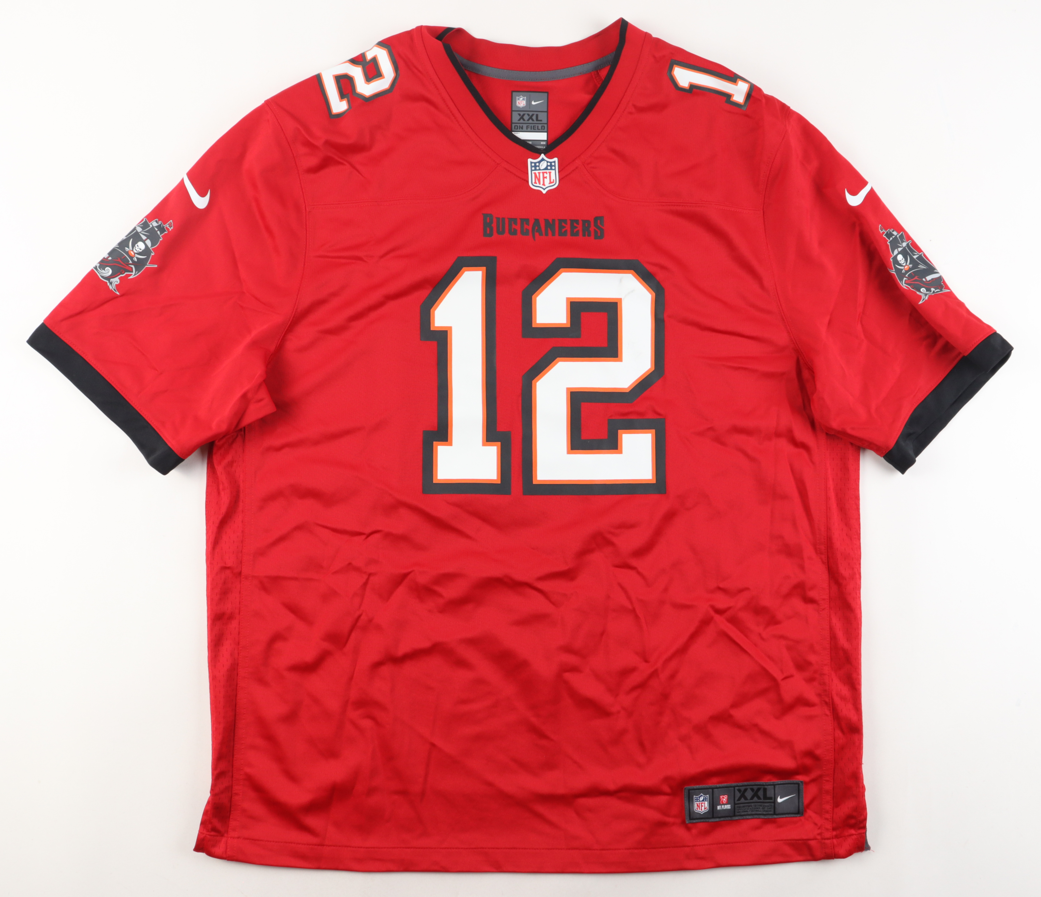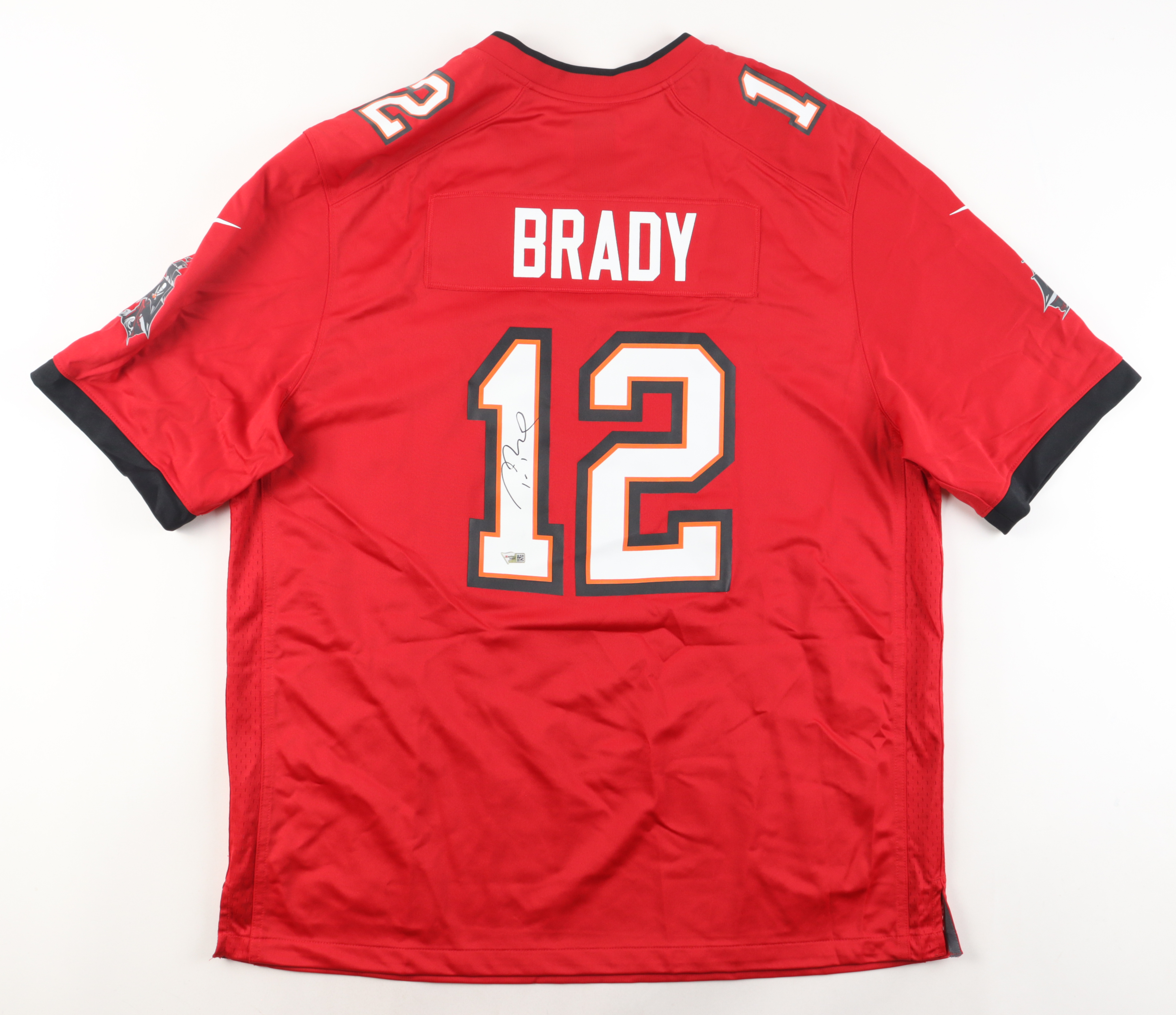 Authentic Nike jersey with everything pressed on, size XXL. Hand-signed by Tom Brady (Tampa Bay Buccaneers). Please note, the front numbers of the jersey have a small stain.