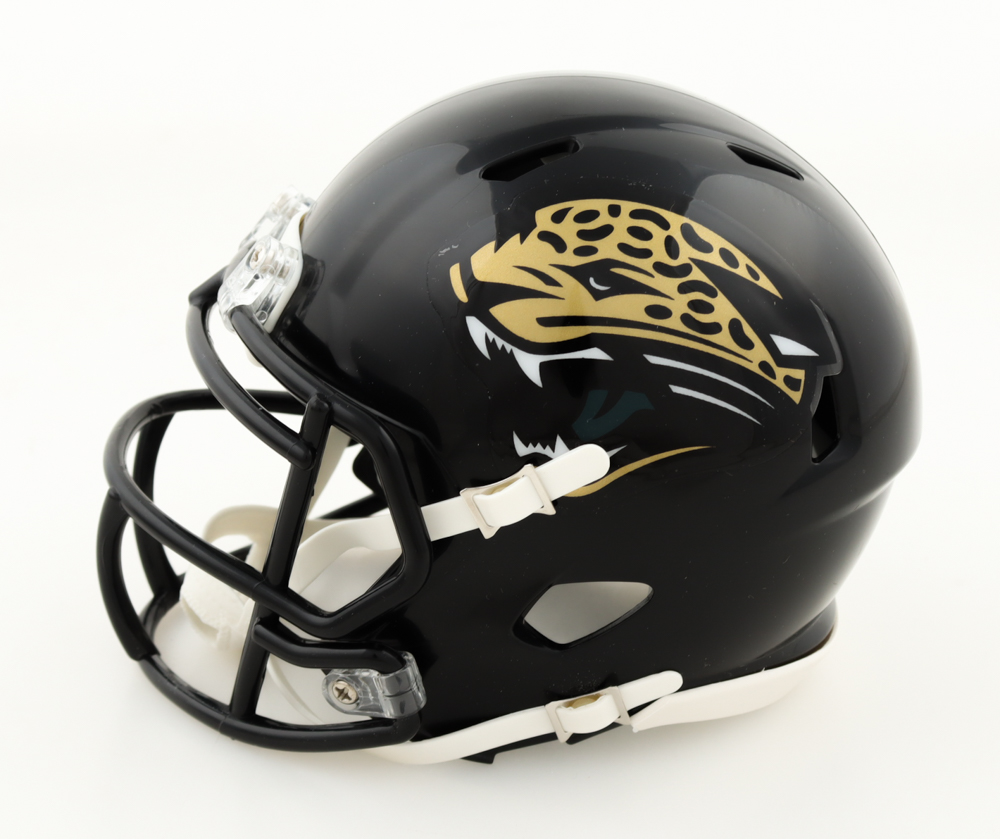 Riddell Jacksonville Jaguars Speed mini helmet. Hand-signed and inscribed by Zay Jones.
