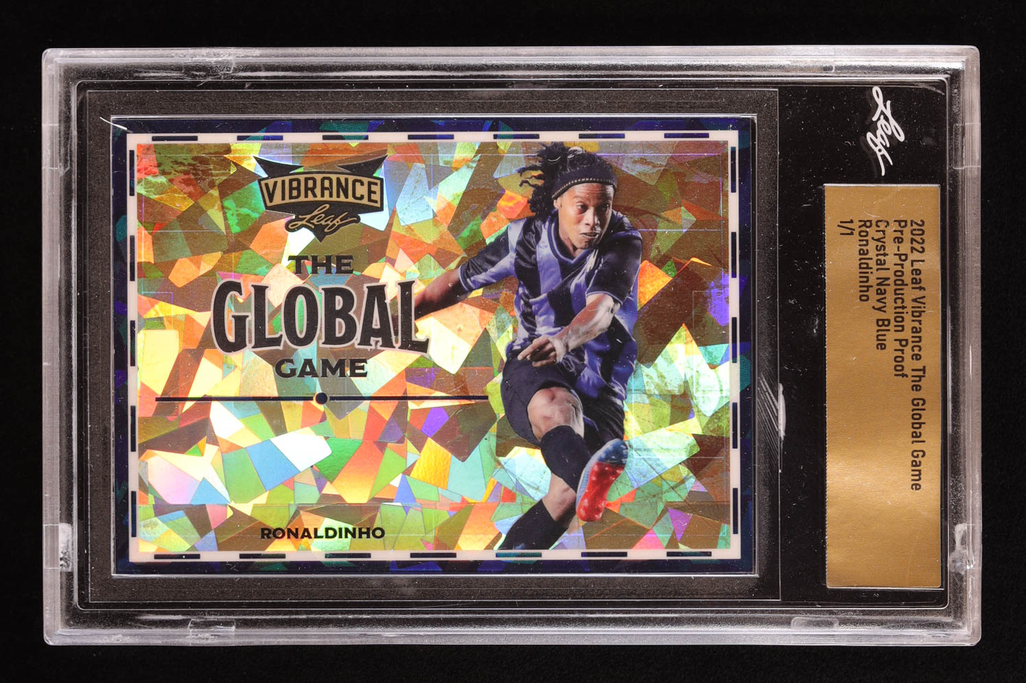 Ronaldinho 2022 Leaf Vibrance The Global Game Pre-Production Proof Crystal Navy Blue #1/1 (Leaf)