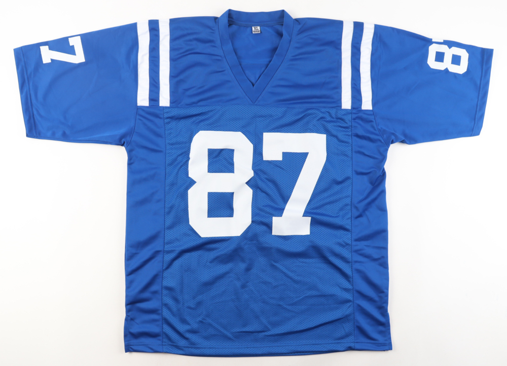 Custom style jersey. Everything is sewn on, size XL. Hand-signed and inscribed by Reggie Wayne. Please note, the inscription has bled.