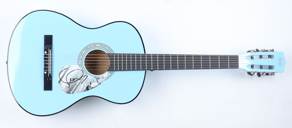 BCP Acoustic guitar measures approximately 38" in length and has been hand-signed on a CD cover that has been repurposed as a pick-guard by Taylor Swift.