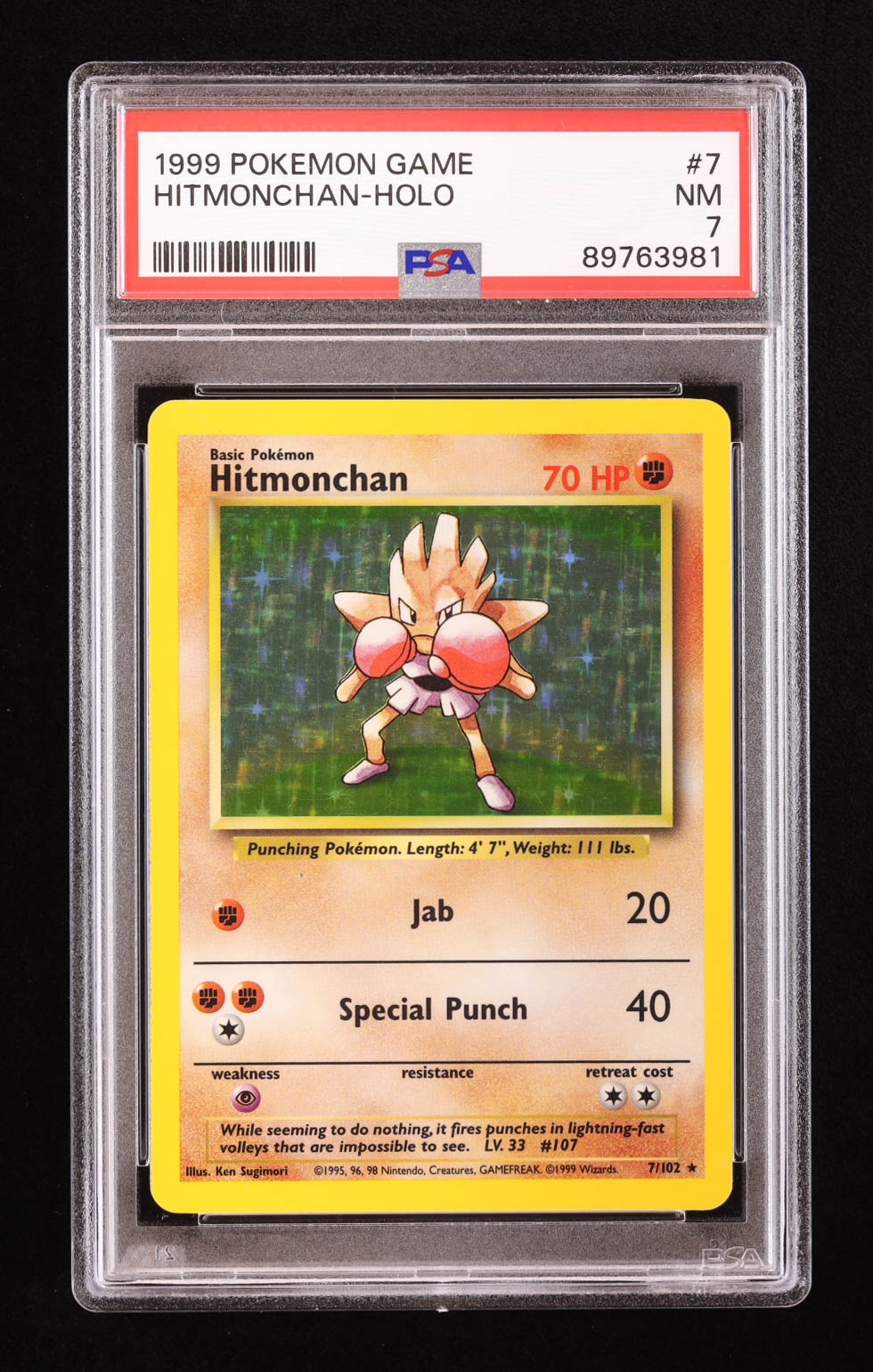 Hitmonchan Pokemon 1999 Base Unlimited #7 Holo (PSA 7)