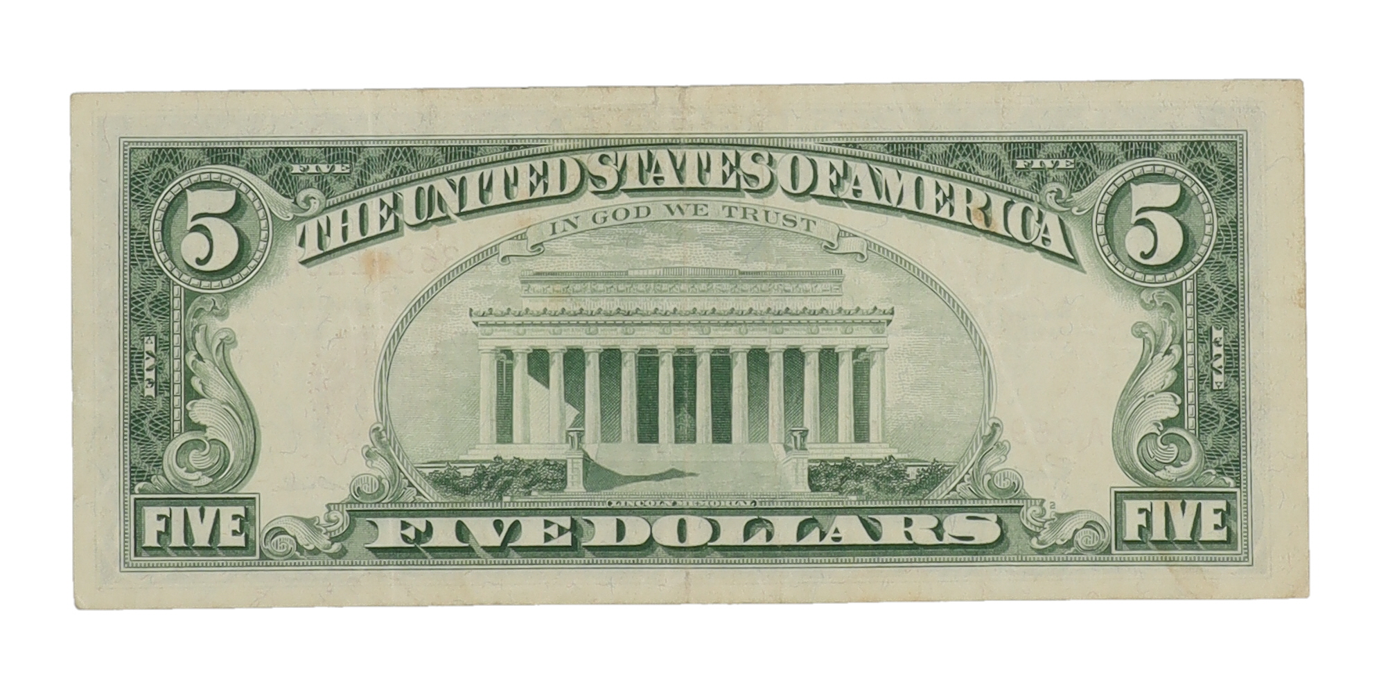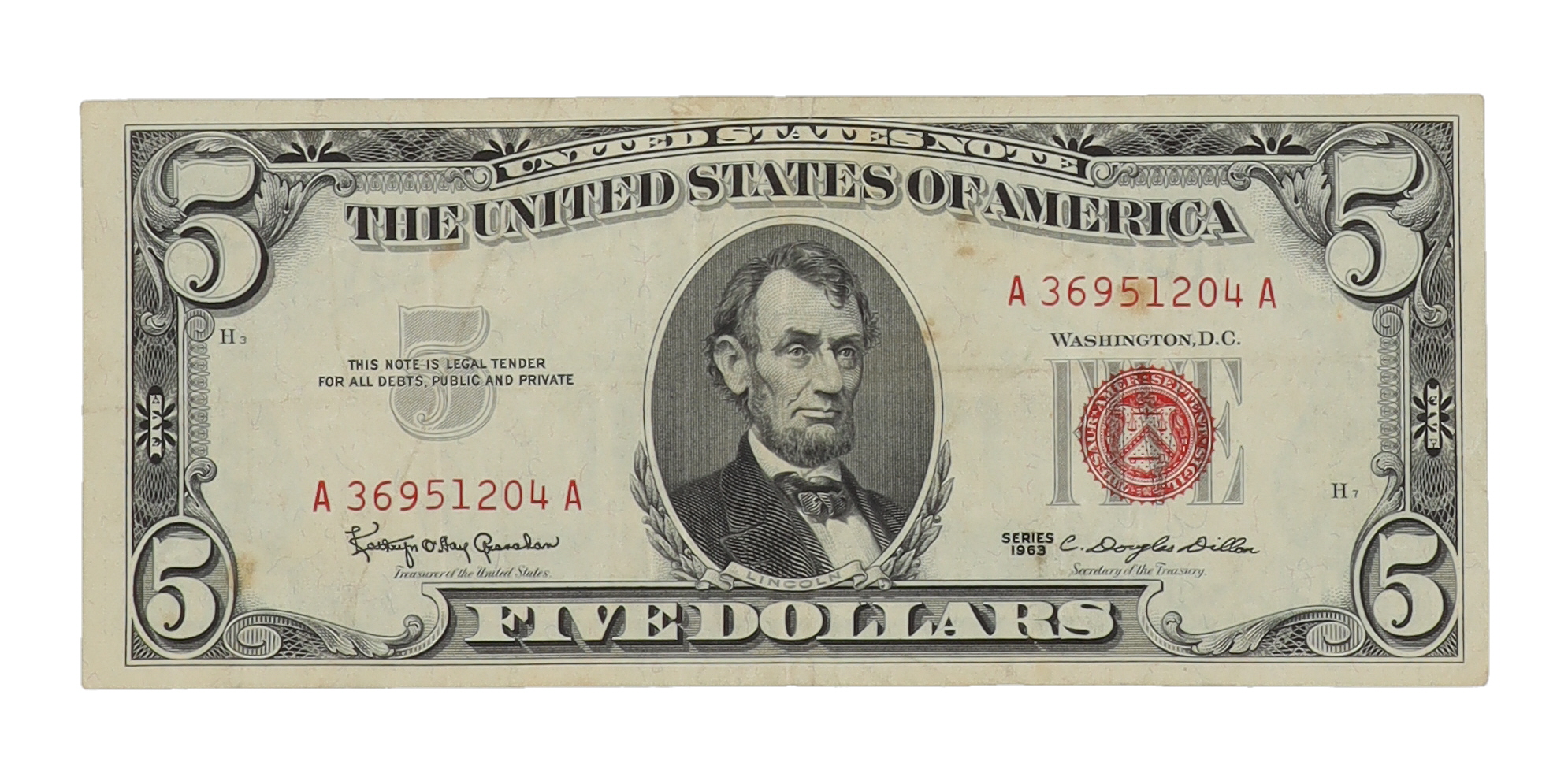 1963 U.S. $5 Five Dollars Legal Tender Note - Red Seal