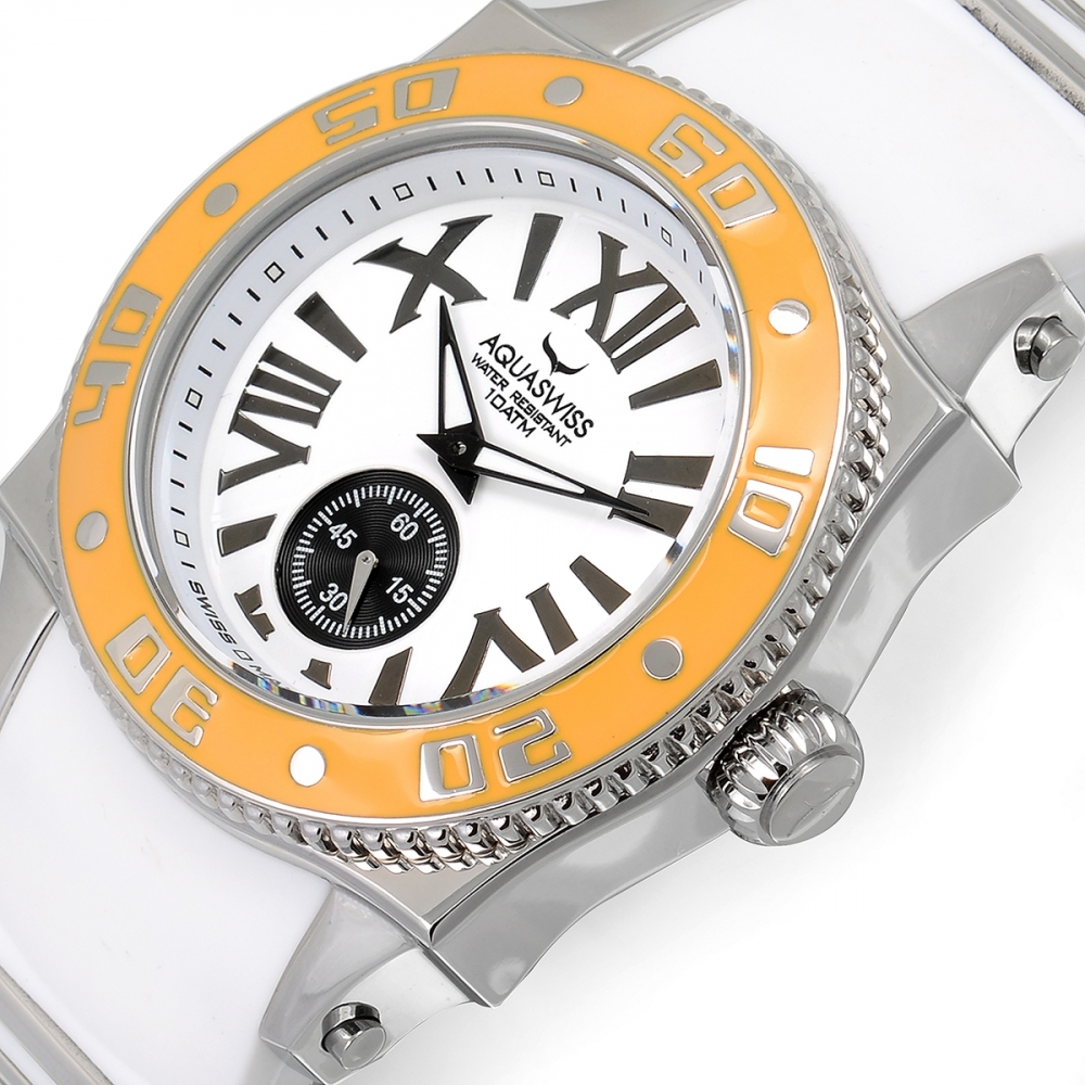 Introducing the AQUASWISS Collection, stunning watches that can be worn for sport, casual, or dress. All AQUASWISS timepieces are water resistant up to 10 ATM (330 feet). All AQUASWISS watches come with Swiss movements. This AQUASWISS watch is BRAND NEW and comes in its original box with owners manual and 2 year warranty (from Manufacturer). AQUASWISS watches are truly high quality timepieces. (All weights, measurements and colors are approximate and may vary slightly from the listed dimensions or as seen in the image).
