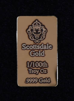 Scottsdale Gold 1/100 Troy Oz .9999 Fine Gold Bullion Bar