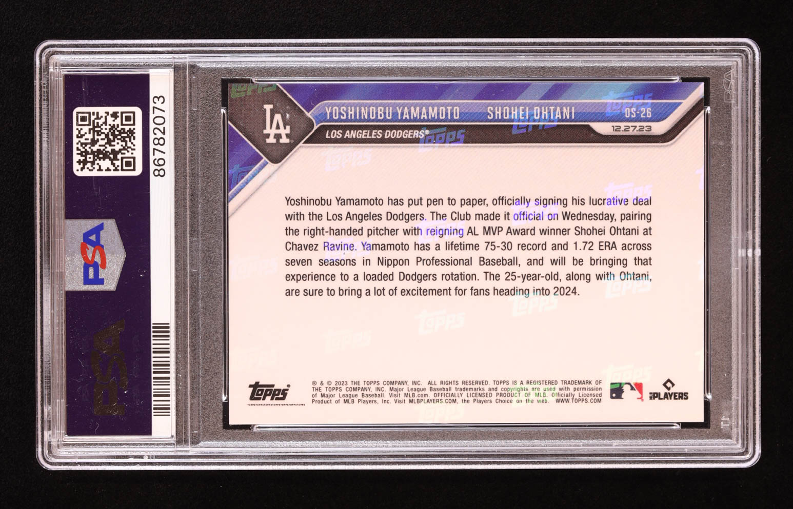 Yoshinobu Yamamoto RC / Shohei Ohtani 2023 Topps Now Offseason #OS26 (PSA 10)