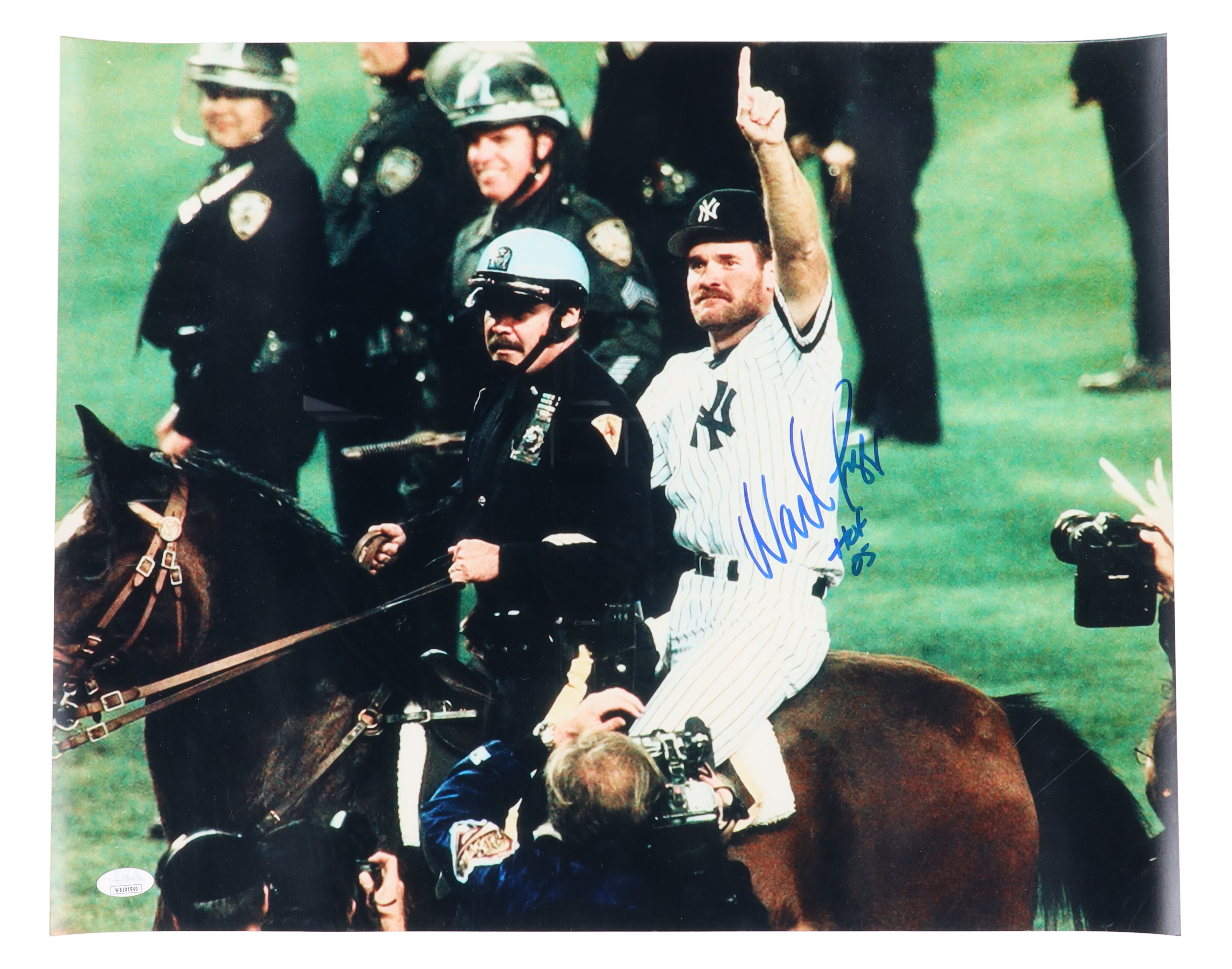 Photo measures 16" x 20" in size. Hand-signed and inscribed by Wade Boggs (New York Yankees, HOF).