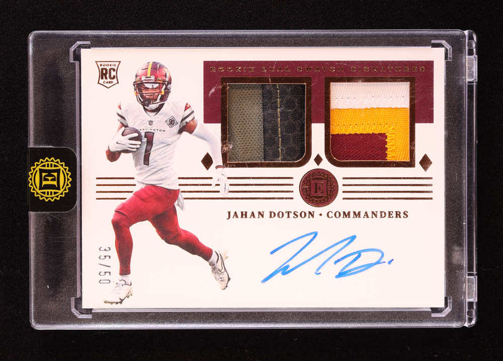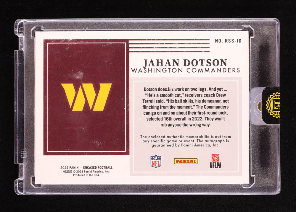 Jahan Dotson 2022 Panini Encased Rookie Dual Swatch Signatures #RSSJD RC #35/50 RC