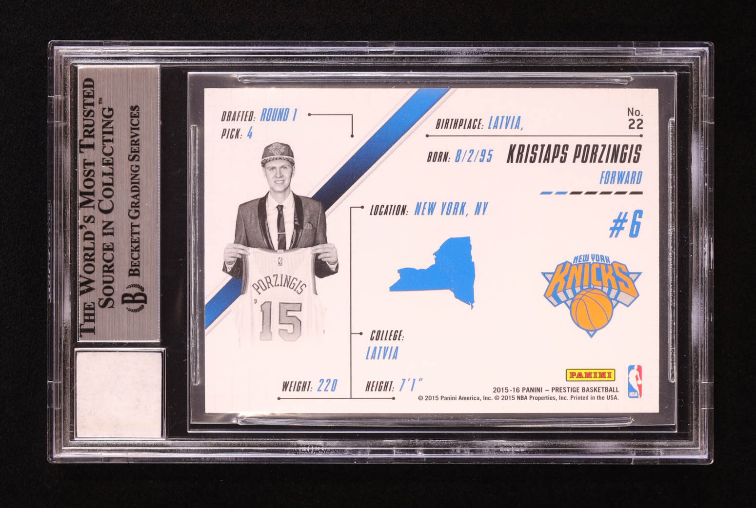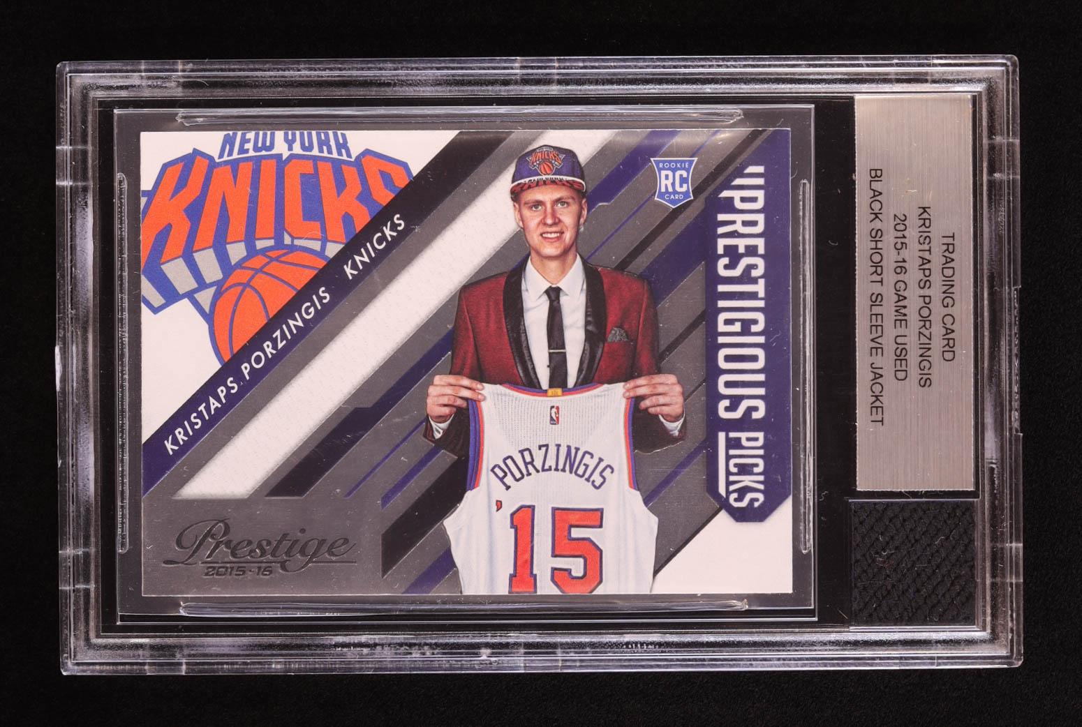 Kristaps Porzingis 2015-16 Panini Prestigious Picks #22 RC with Game-Used Jersey Piece (BGS Authentic)