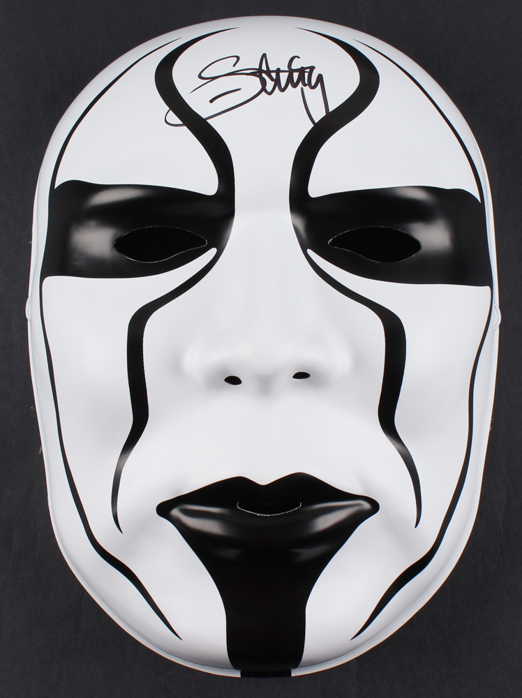 Steve Borden "Sting" Mask has been hand-signed in black felt-tip pen by Steve Borden (Sting).