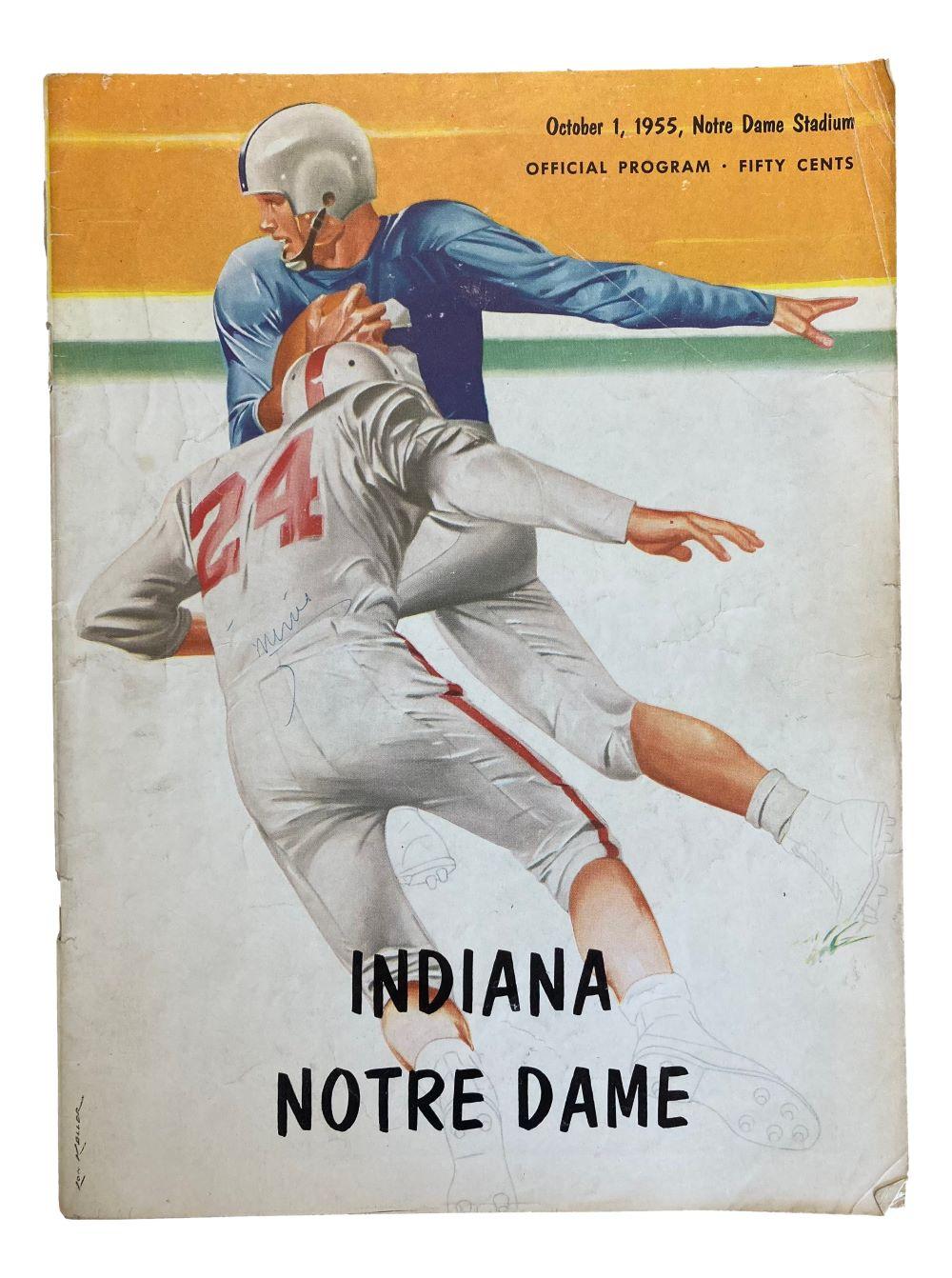 Featured is a October 1st, 1955 Notre Dame Fighting Irish vs Indiana Hoosiers game program. Please note, this item is unsigned.