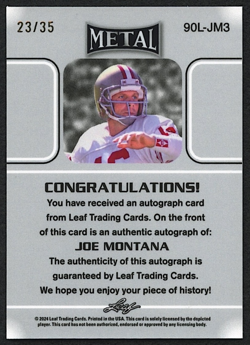 Joe Montana 2024 Leaf Legacy Collection "1990 Leaf" #90L-JM3 Autograph SP Variation #23/35