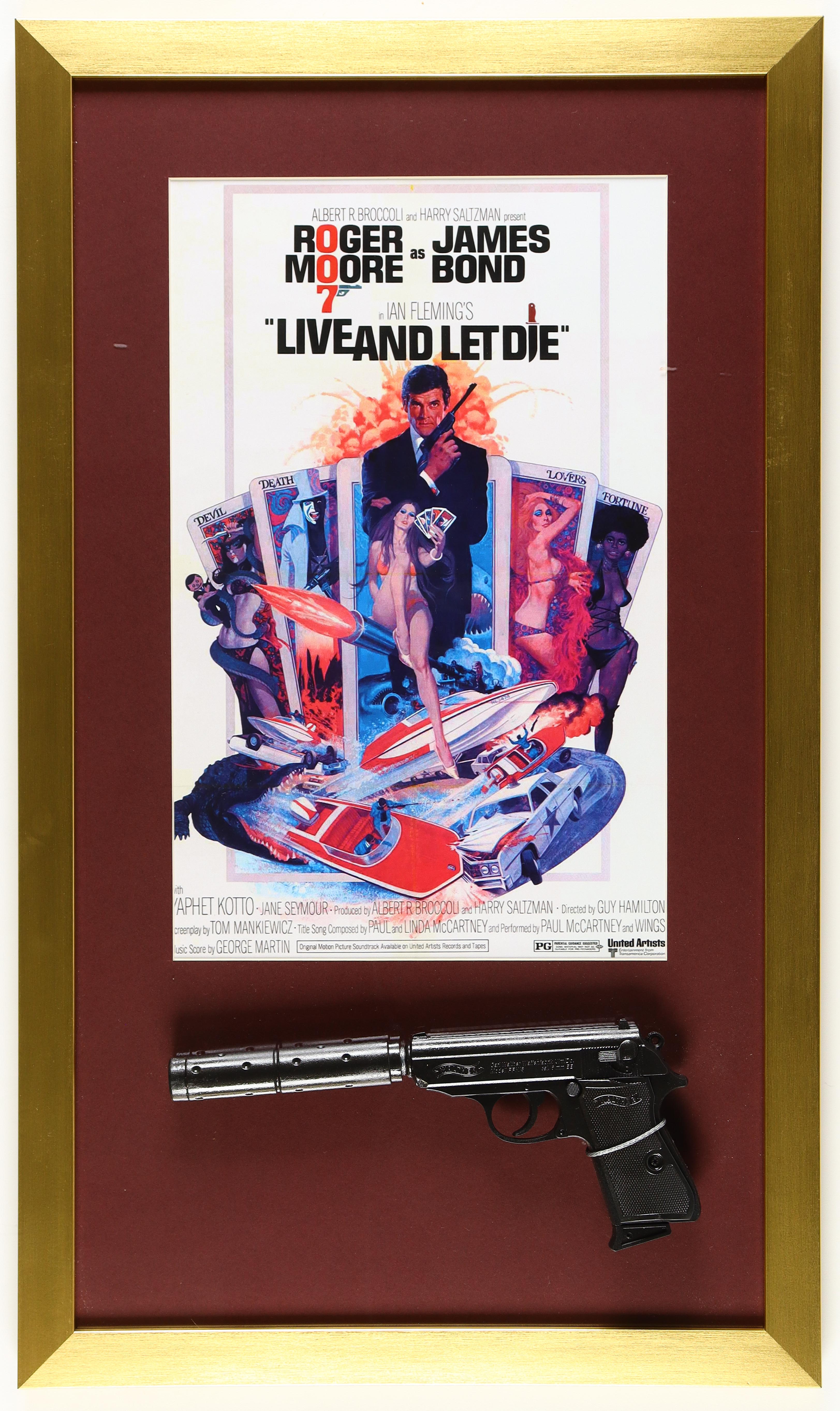 James Bond "Live and Let Die" Custom Framed Poster Print Display with Walther PPK Prop Replica Metal Pistol