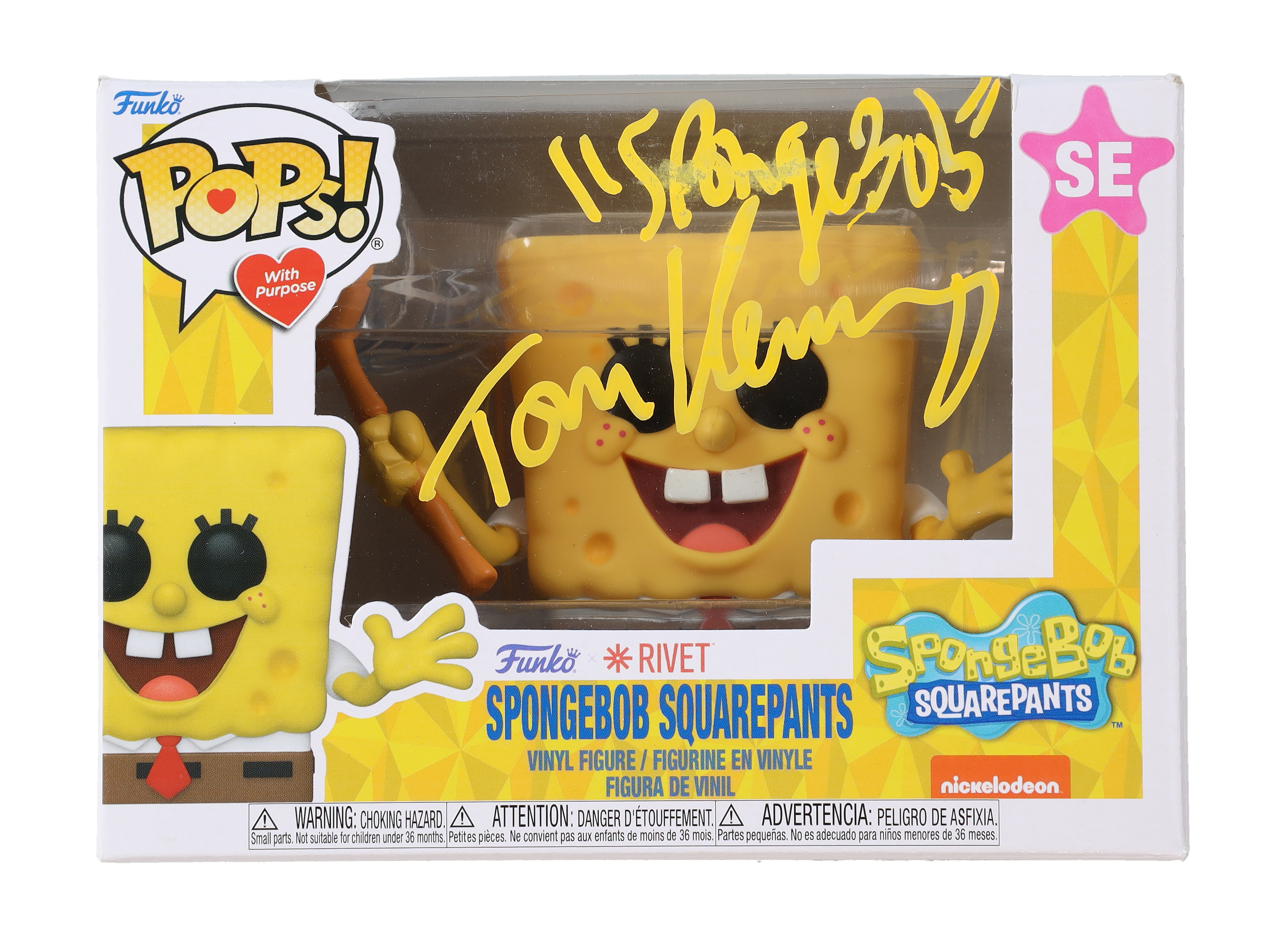 Funko pop! vinyl figure measures approximately 4" tall and has been hand-signed and inscribed on the packaging by Tom Kenny.