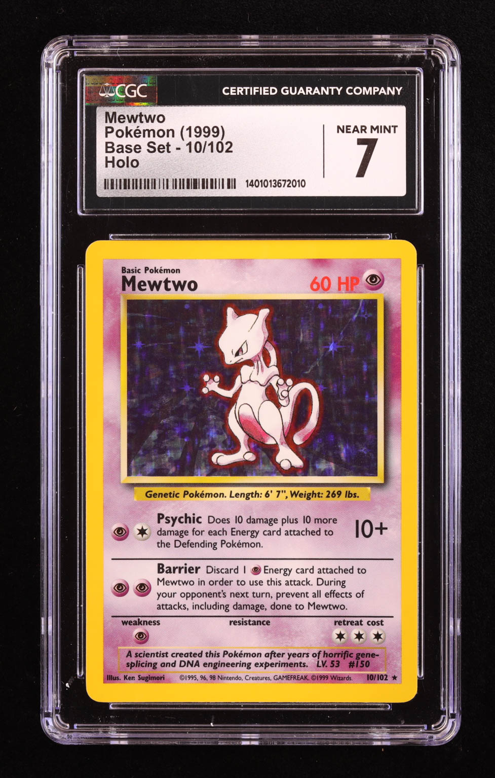 Mewtwo 1999 Pokemon Base Unlimited #10 Holo (CGC 7)