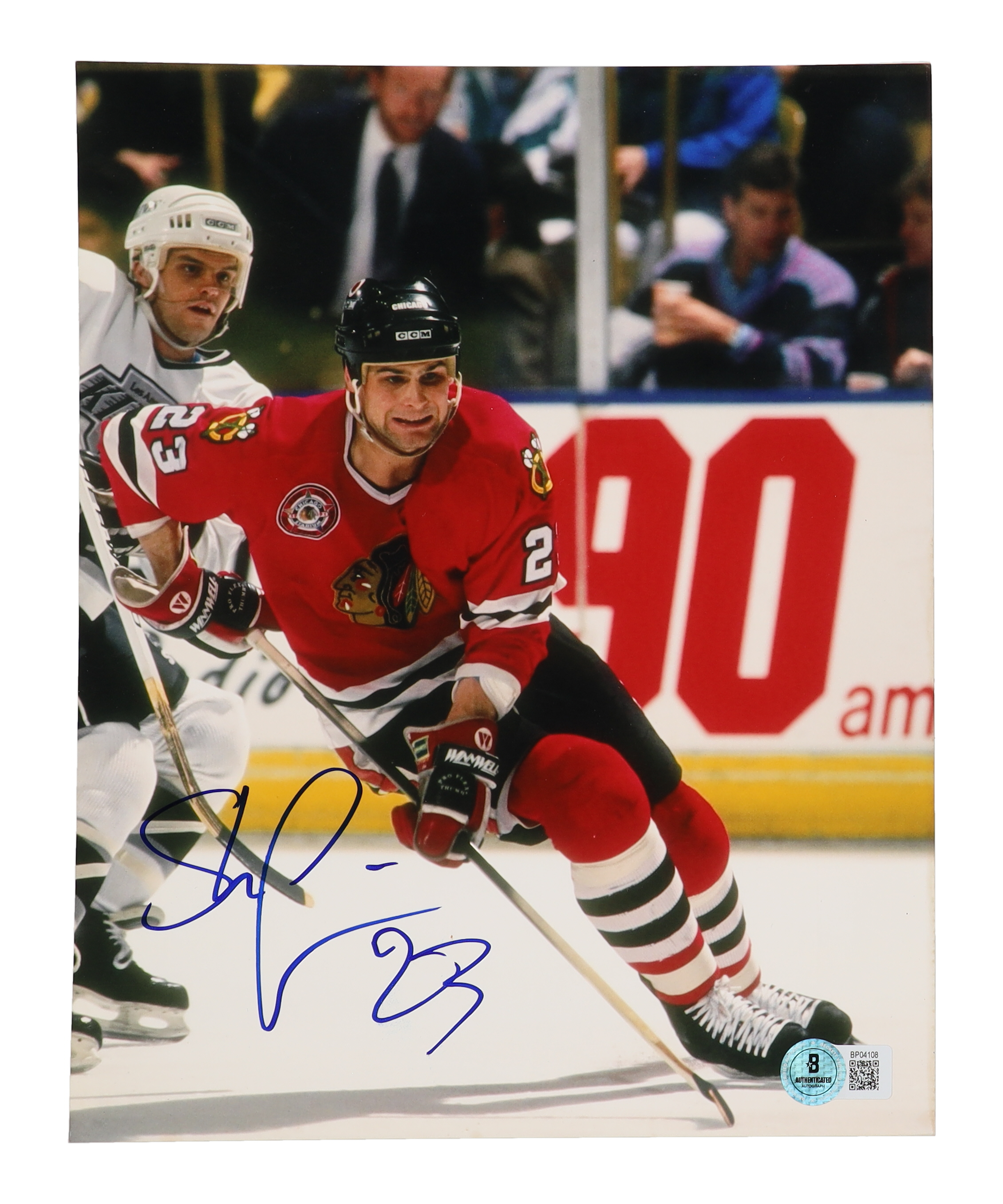 Photo measures 8" x 10" in size. Hand-signed by Stu Grimson (Chicago Blackhawks).
