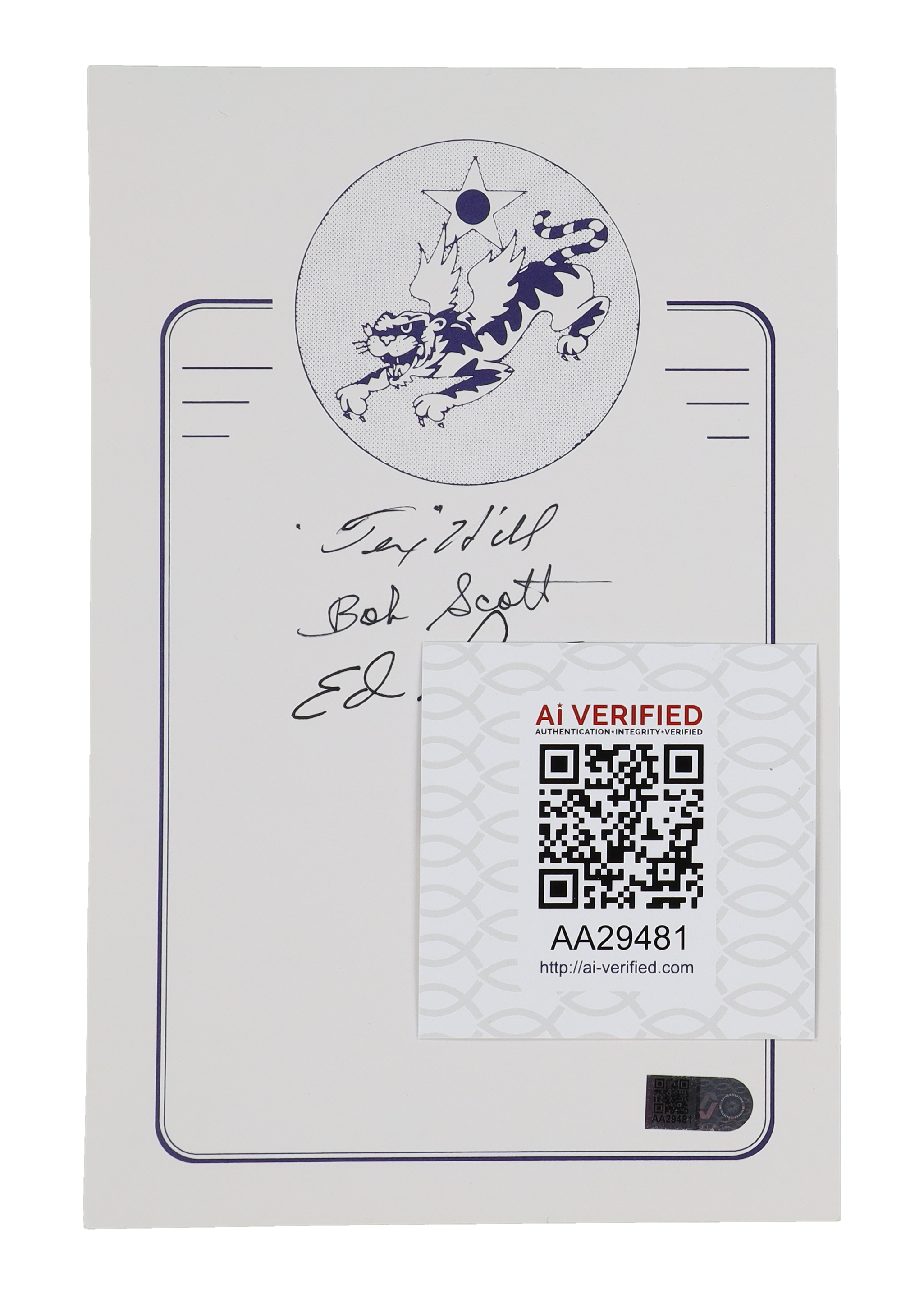 Tex Hill, Ed Rector, & Robert Scott Jr. Signed AVG Flying Tigers Bookplate (AIV)