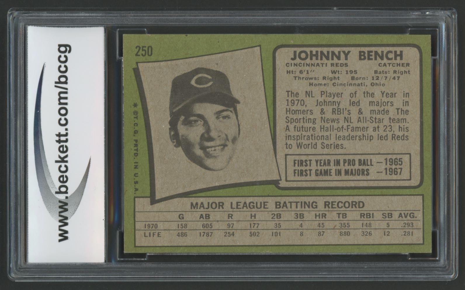 Johnny Bench 1971 Topps #250 (BCCG 9)