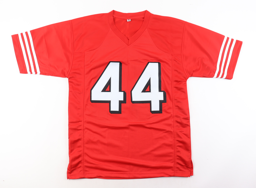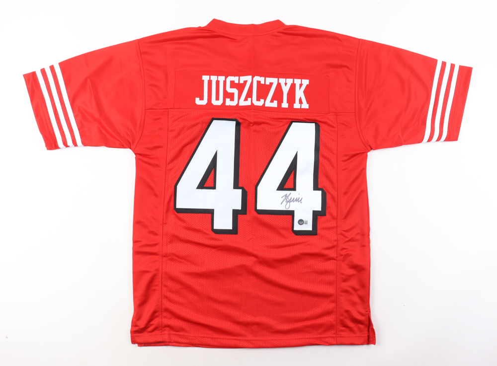 Custom Jersey with everything sewn on, size XL. Hand-signed by Kyle Juszczyk. Please note, the signature has bled.